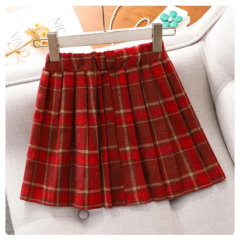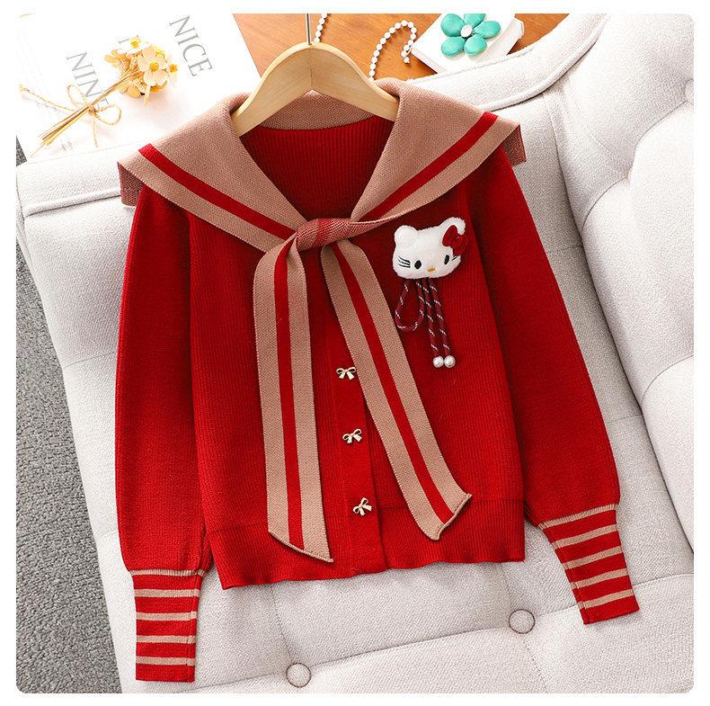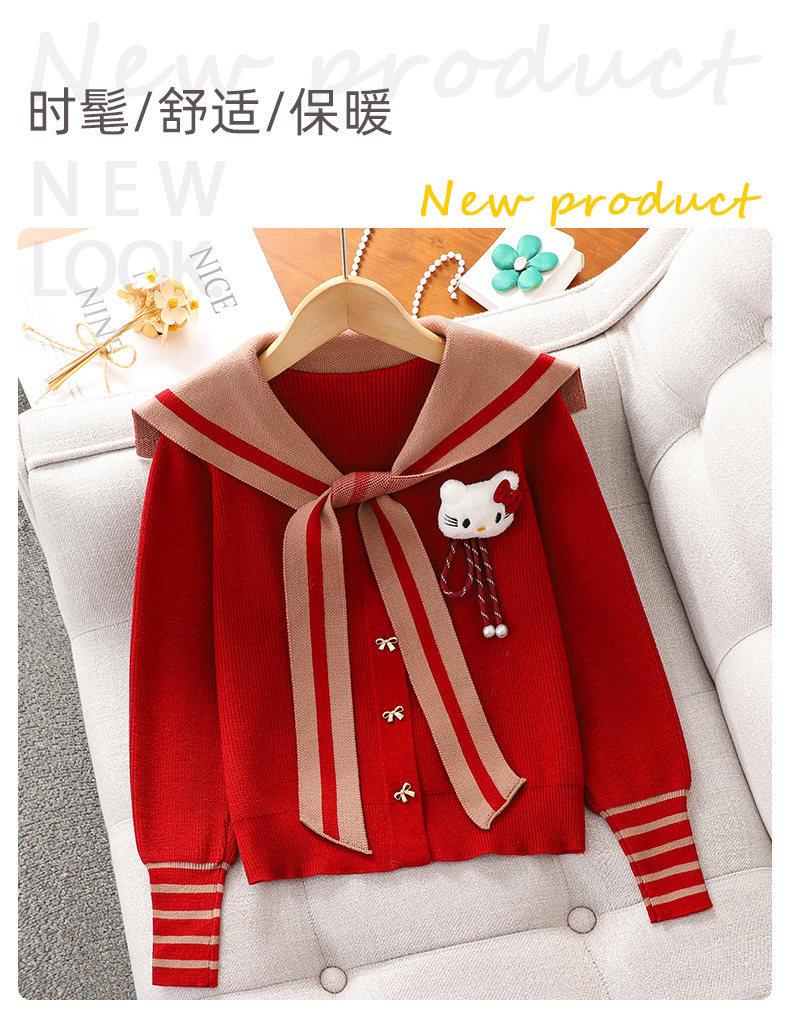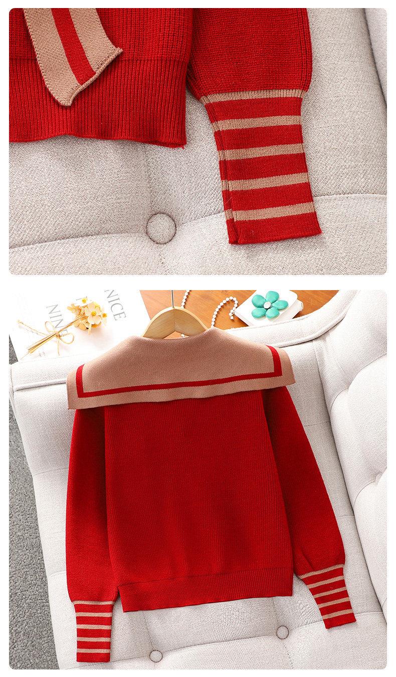女童红色过年套装女孩秋冬学院风毛衣裙子儿童JK百褶裙拜年服冬装