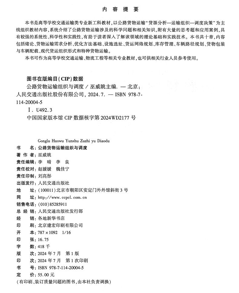 书名:公路货物运输组织与调度