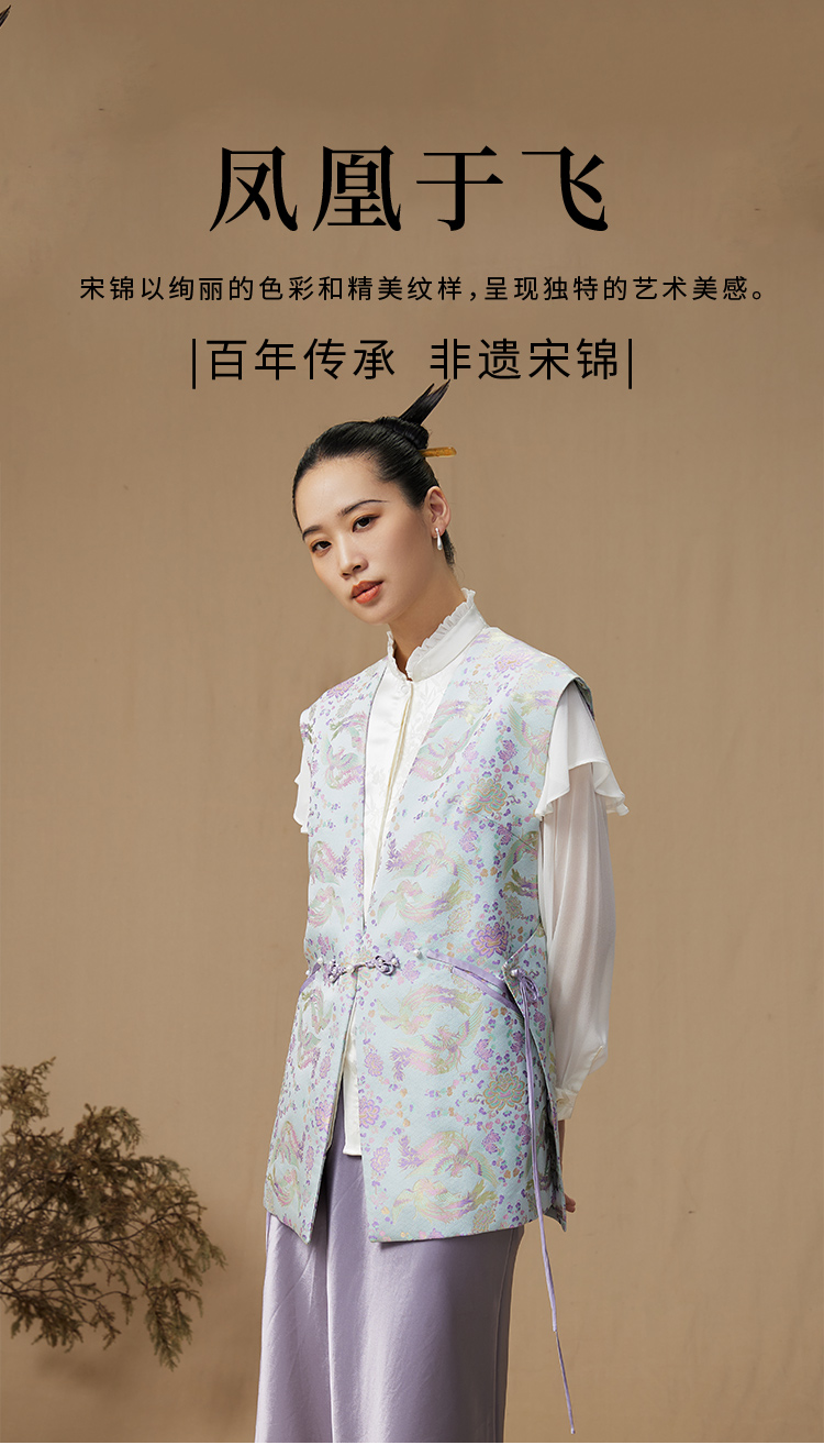 SAINTJOY/上久楷 女式宋锦马甲 中式上衣 中国风 复古 凤凰于飞 CY1044207024