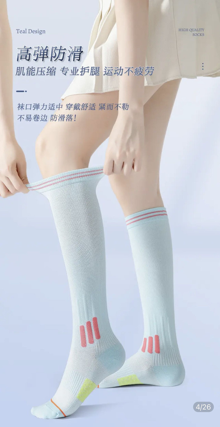 清新活力,运动中释放你的无限能量! 运动肌能小腿袜 清新自然,带着淡雅的凉意 适合所有喜爱清新、活力风格的人群 无论是在健身房内进行高强度训练 还是日常运动时 都能为你带来视觉上的舒适与清爽感