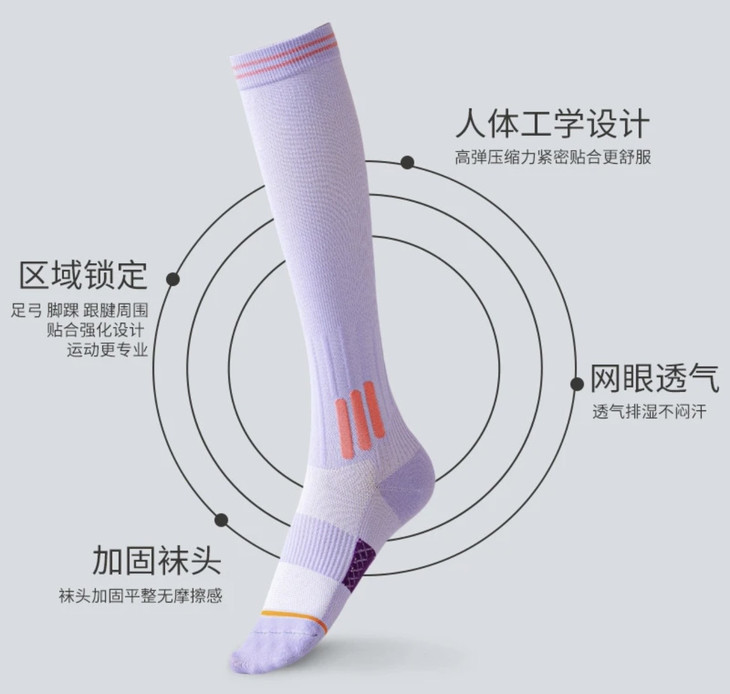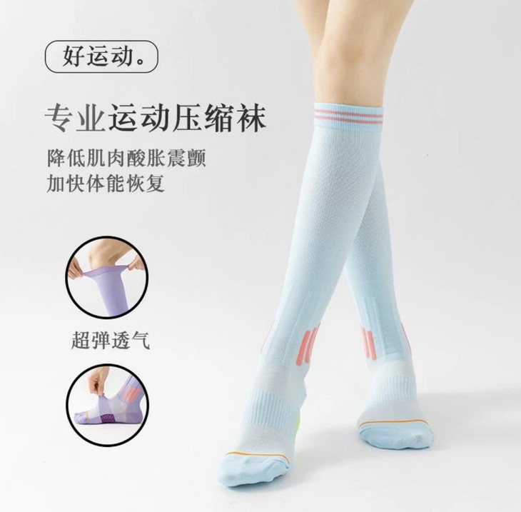 运动专用设计,舒适又高效!!! 运动肌能小腿袜 不仅仅是一双普通的运动袜 它采用了人体工学设计 专门为运动时的小腿部位提供压力支持 袜子采用分段式压缩设计 从脚踝到小腿部位的渐变压力 帮助加速血液循环,提升运动表现,减少疲劳感!!!