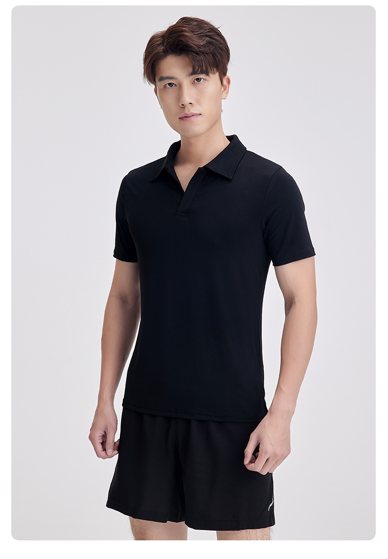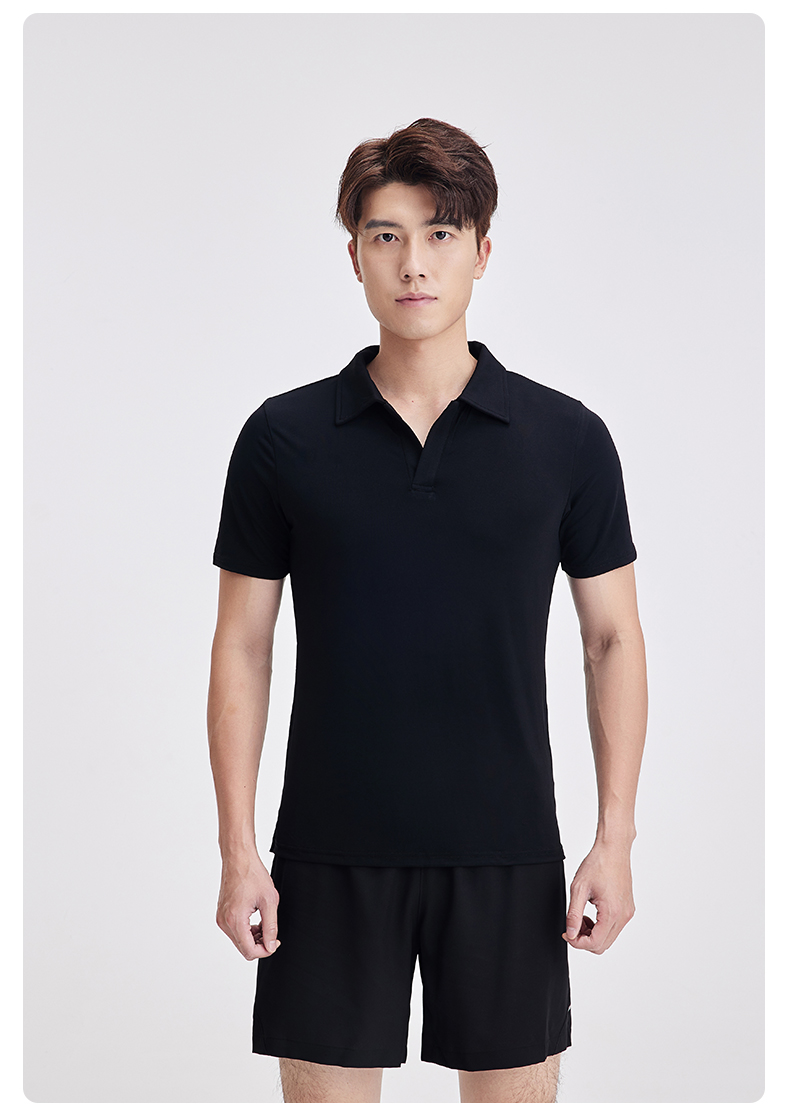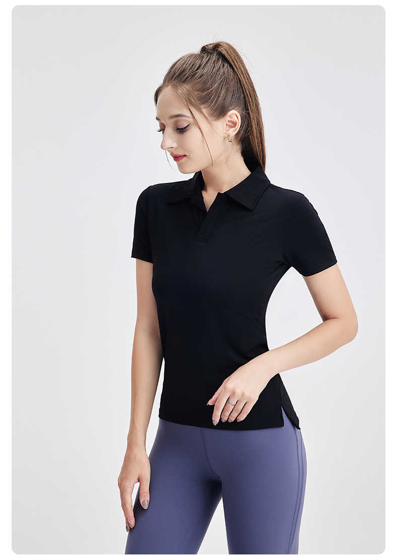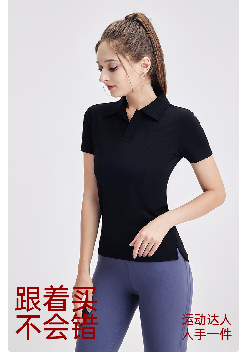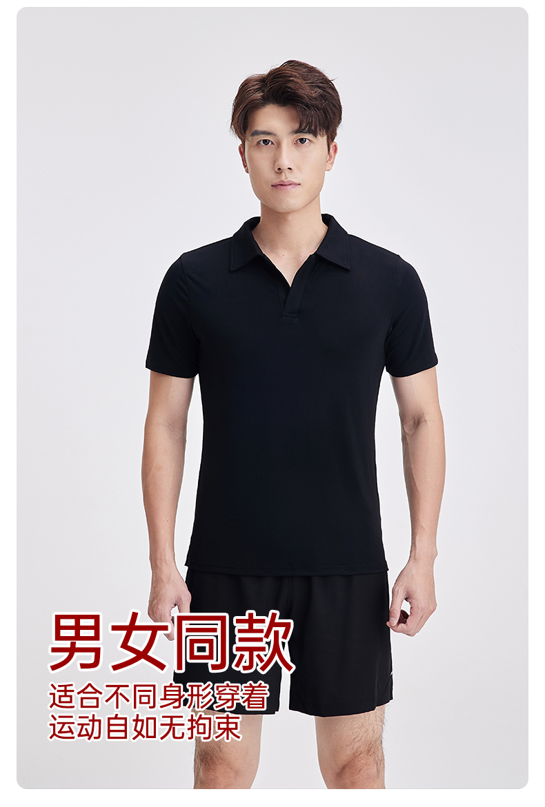 IYOGA翻领男女同款短袖修身V领T恤MT020