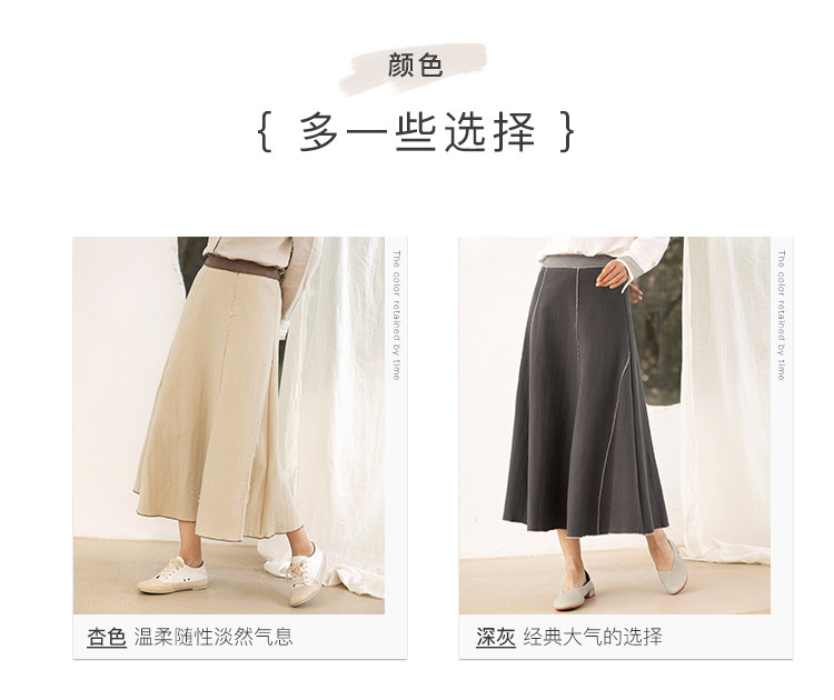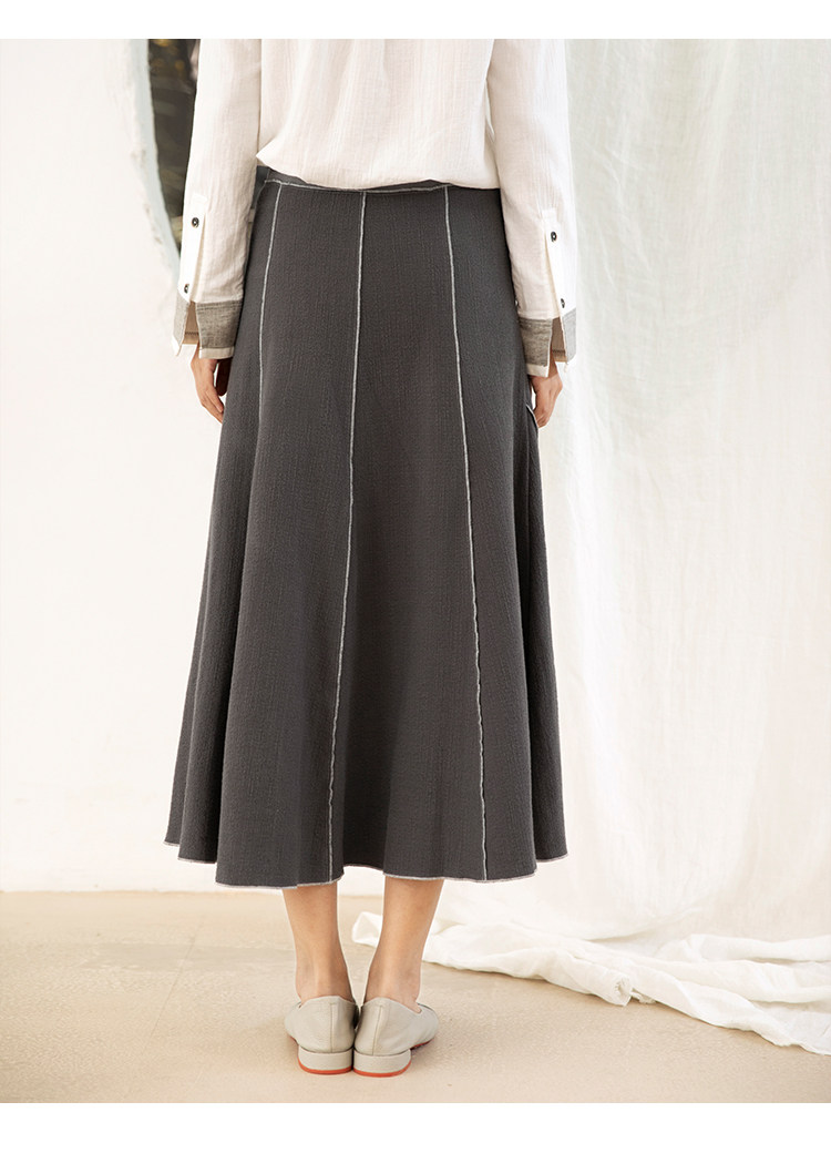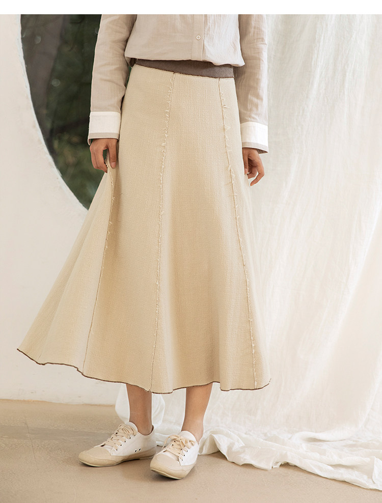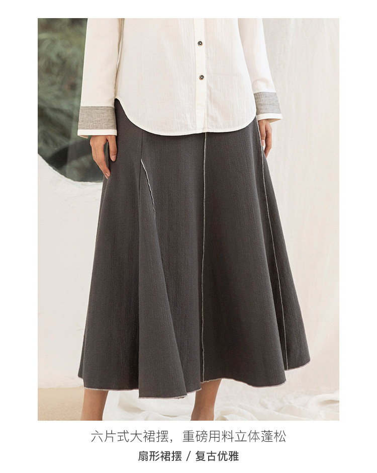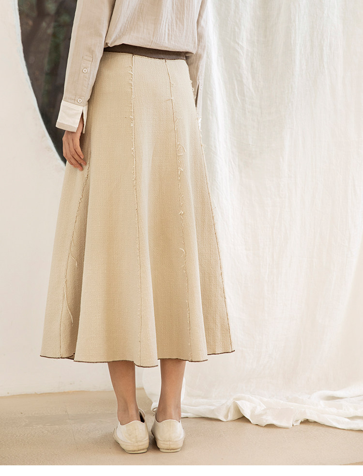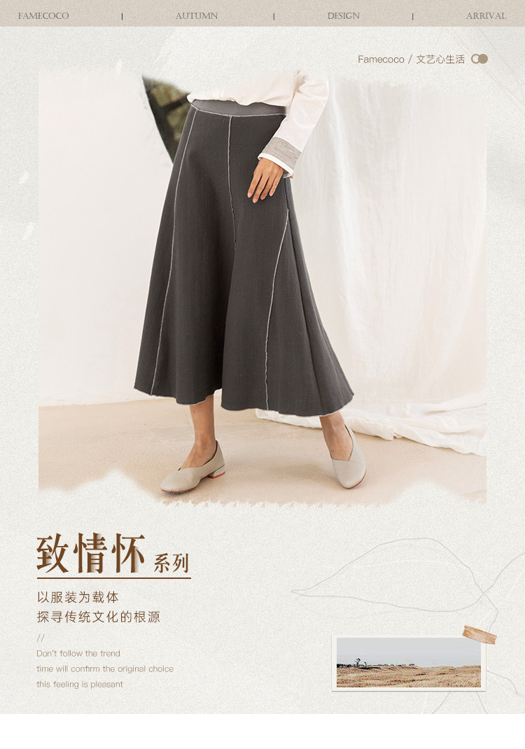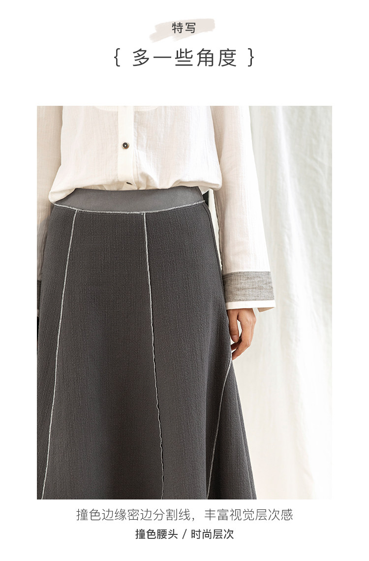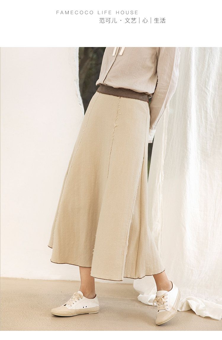 Famecoco范可儿秋季纯棉伞裙女a字中长款撞色半身裙F205HA001
