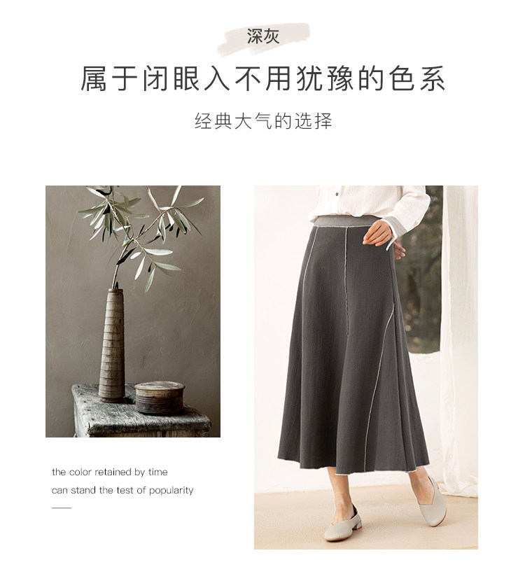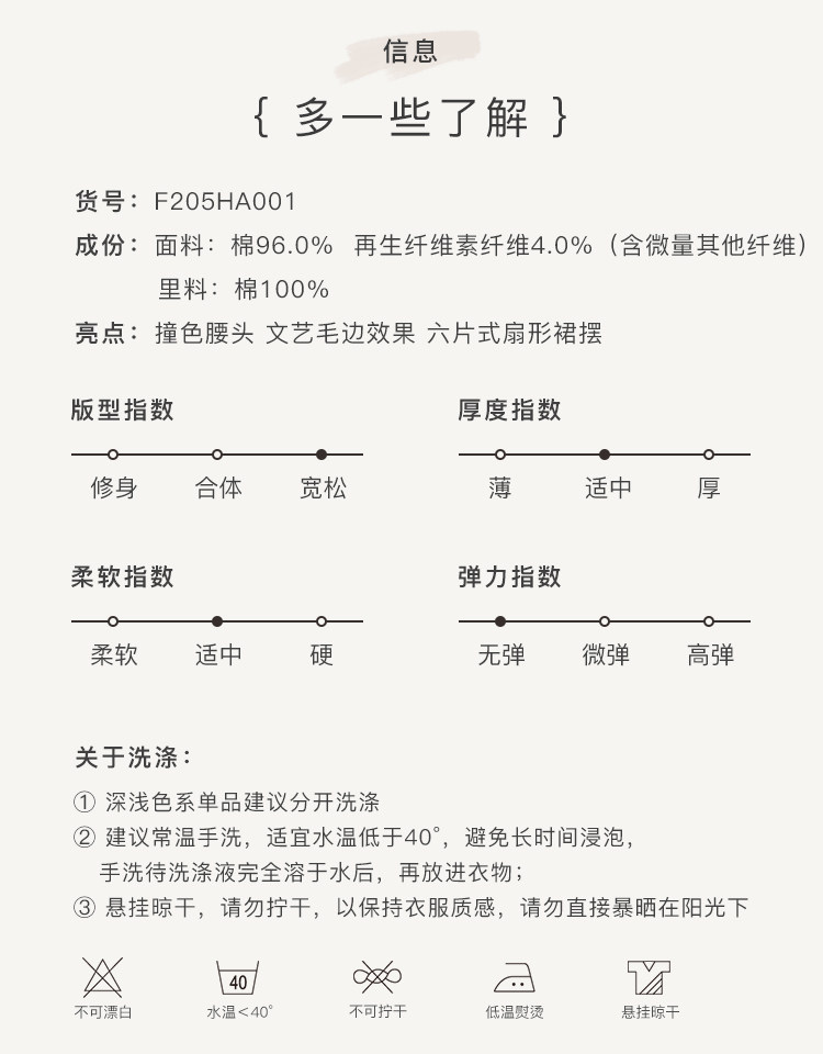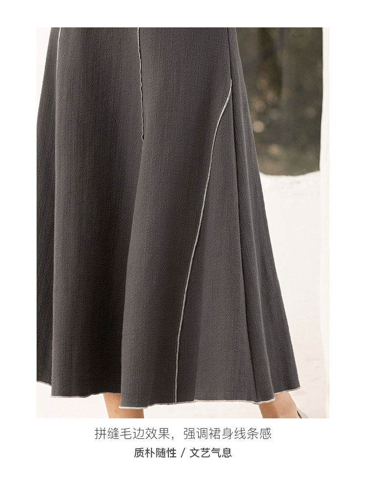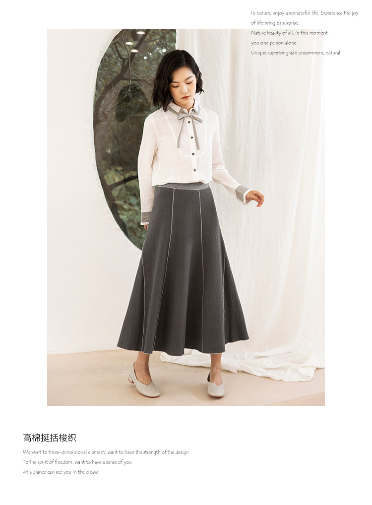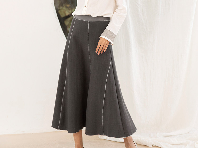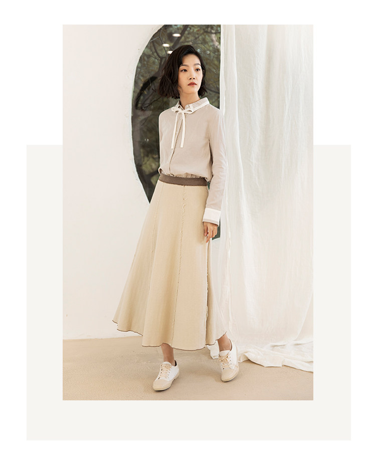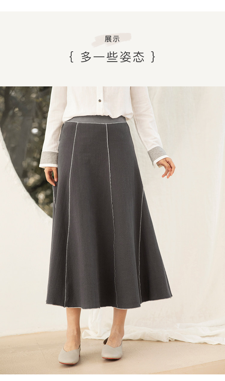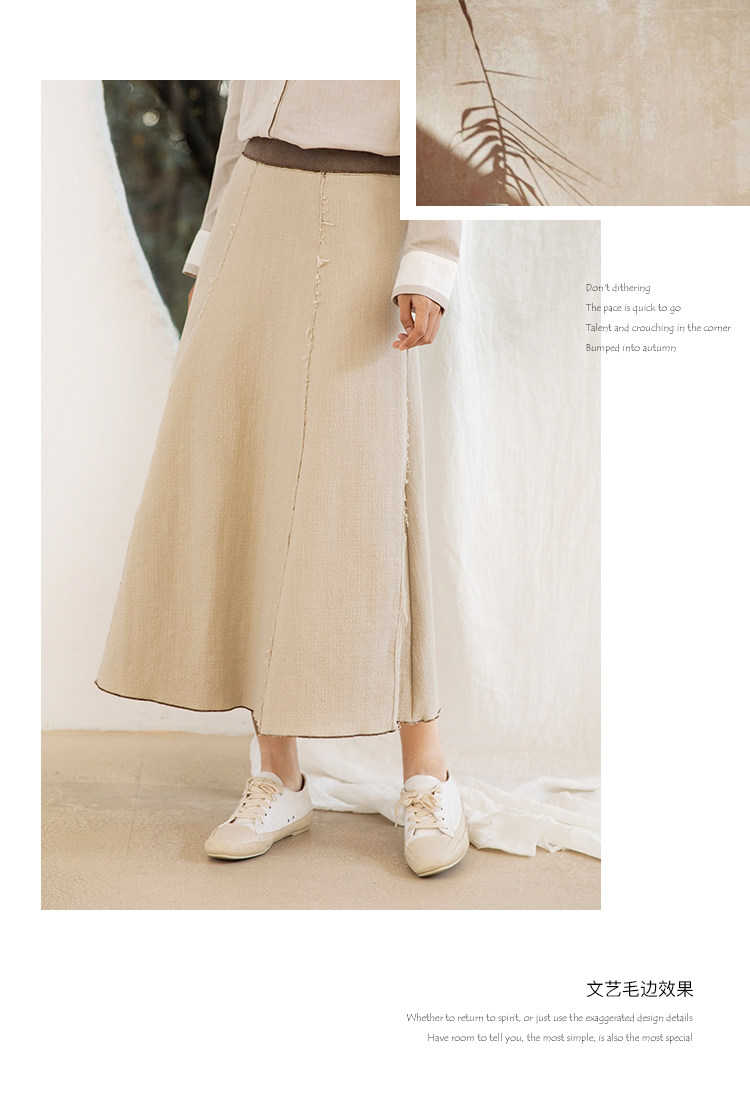Famecoco范可儿秋季纯棉伞裙女a字中长款撞色半身裙F205HA001
