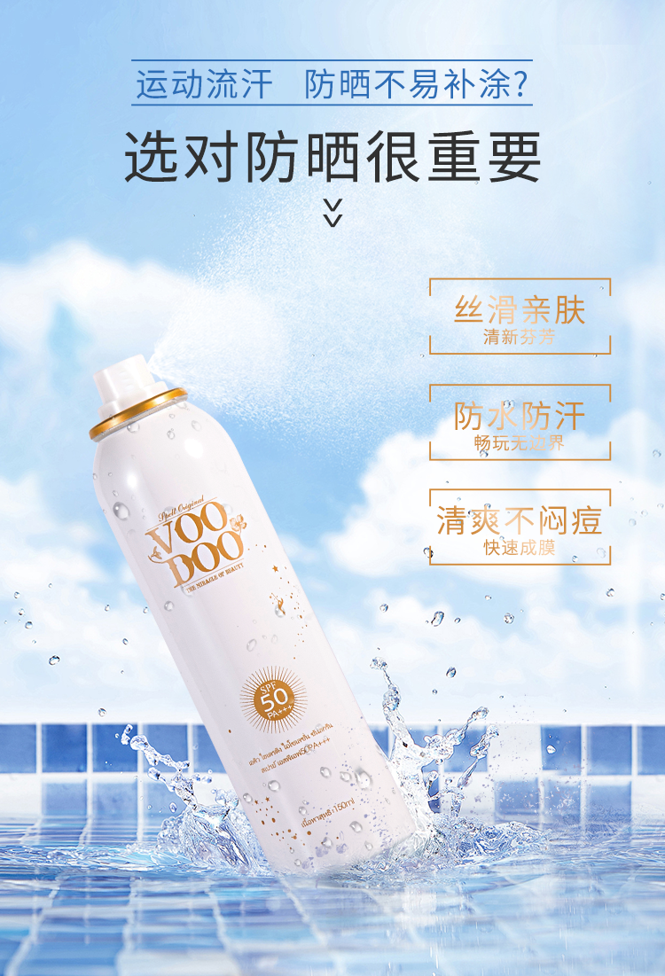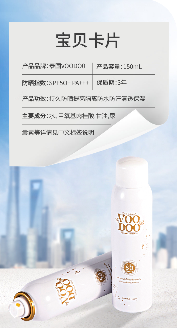 【特证防晒,放肆日光浴】泰国VOODOO隔离防晒修护喷雾 防紫外线防水防汗全身可用 150ml