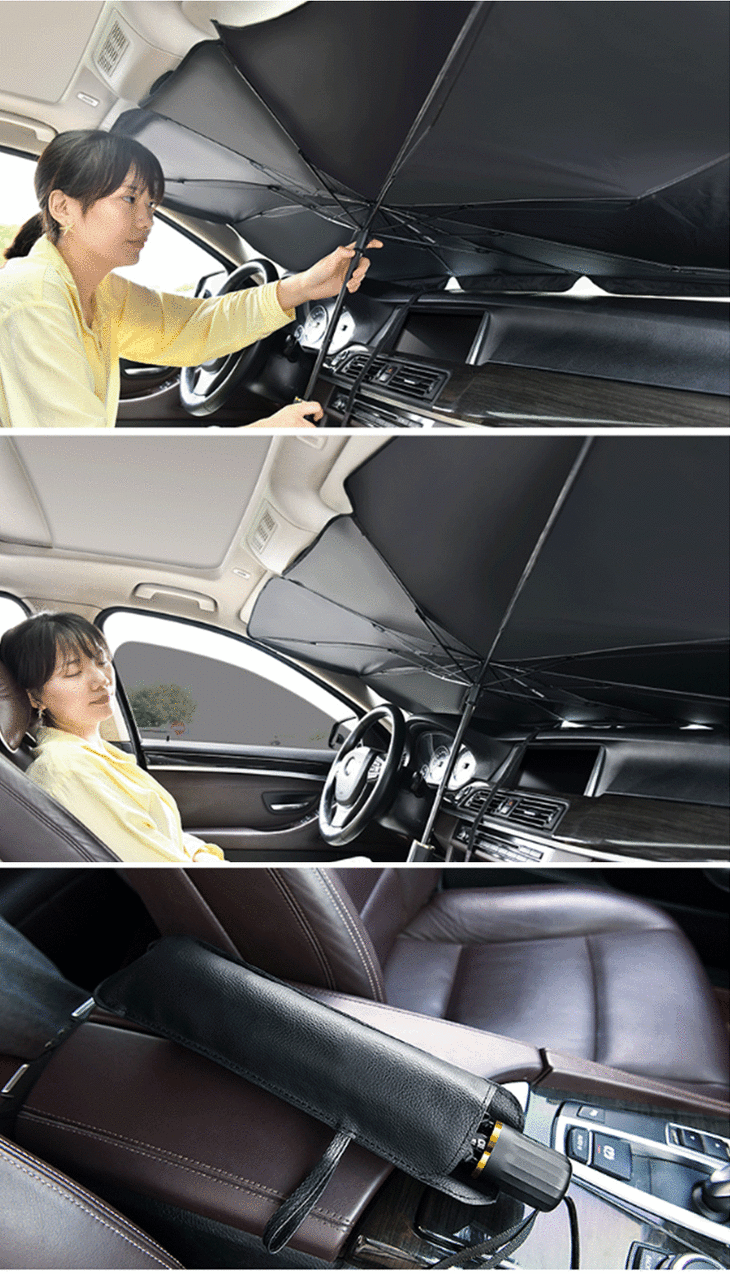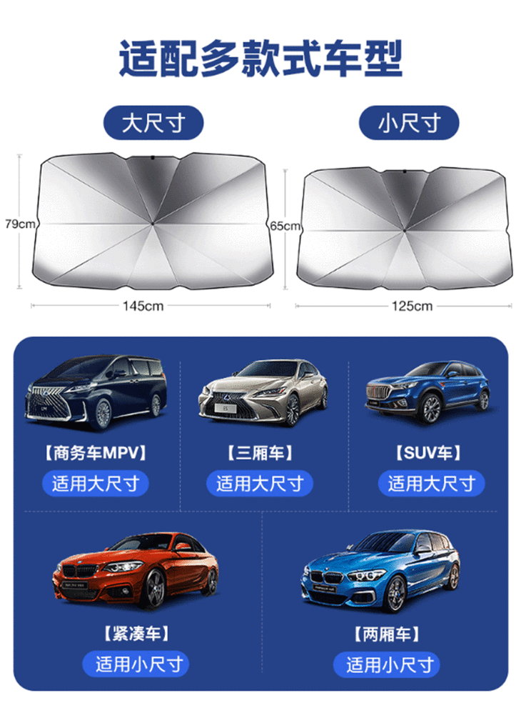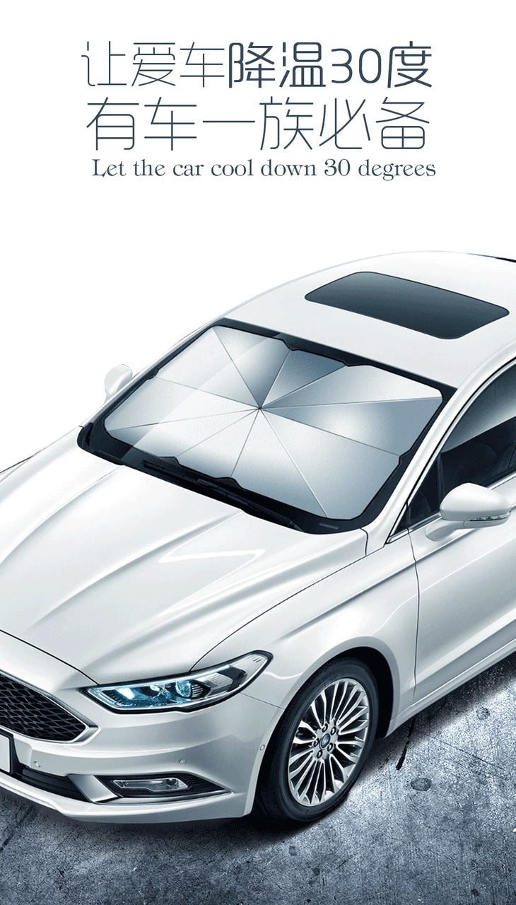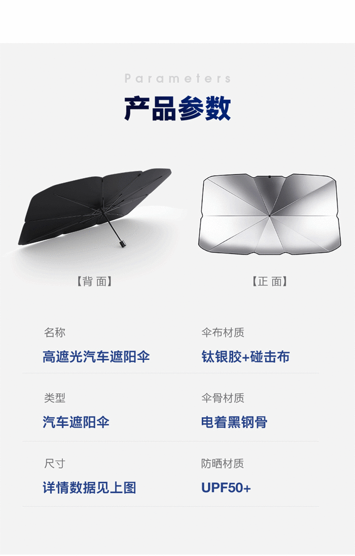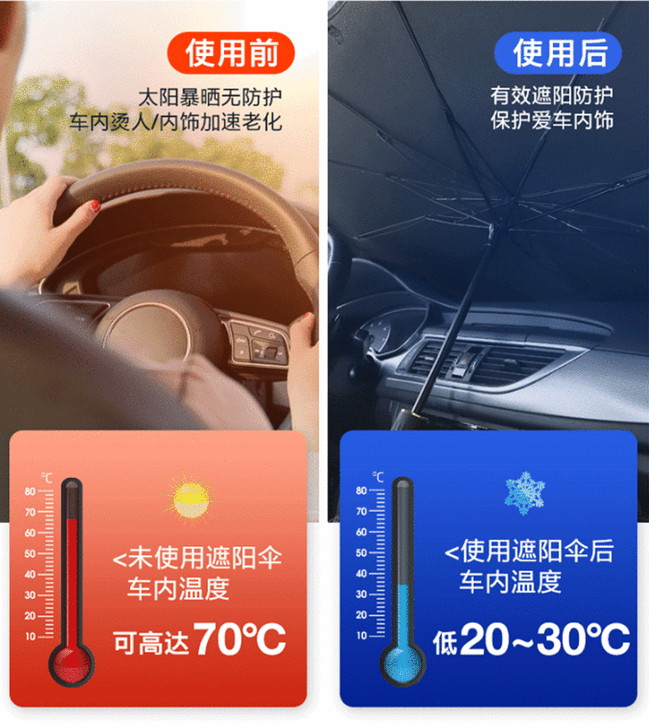 【防晒隔热免安装,零透光汽车遮阳伞】钛银防晒涂层,便携耐用,便捷开合,轻松收纳,告别繁琐!