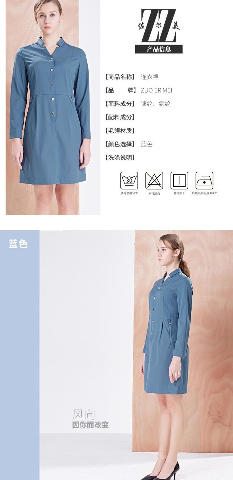 佐尔美春秋款女装简约白领OL风长袖立领连衣裙短裙E63LL12