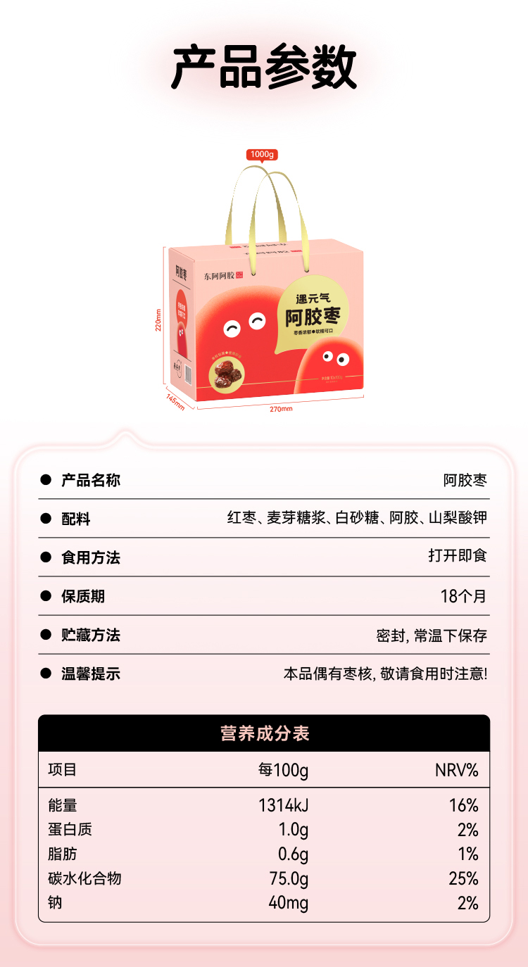【积分兑换】遇元气阿胶枣100g*10盒/礼盒