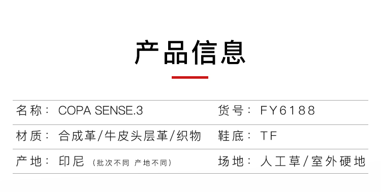 ADIDAS/阿迪达斯 COPA SENSE.3 TF碎钉中端比赛训练足球鞋FY6188