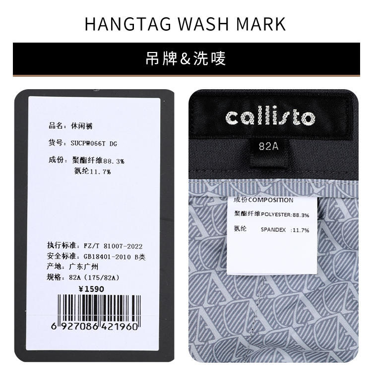 callisto高智系列山影灰千鸟格绵羊毛西裤