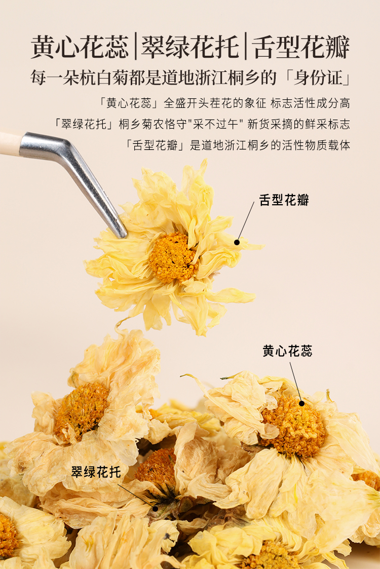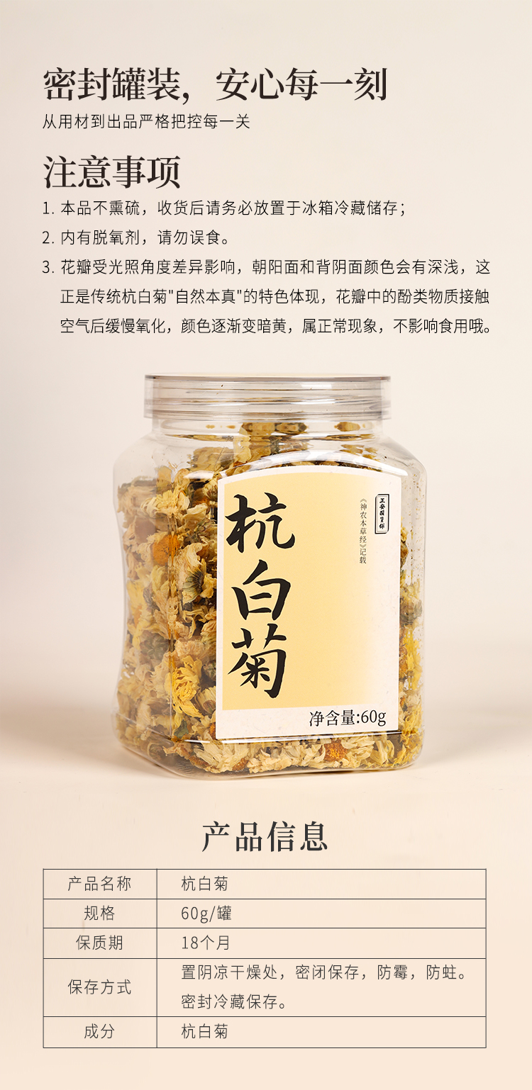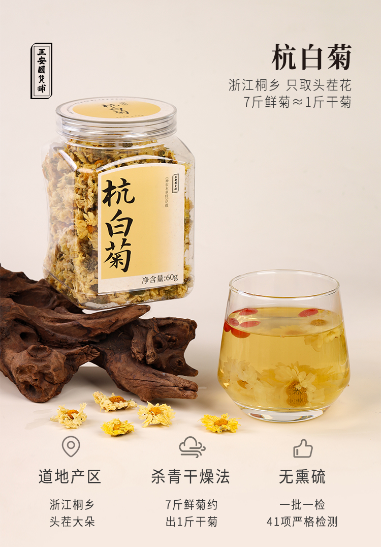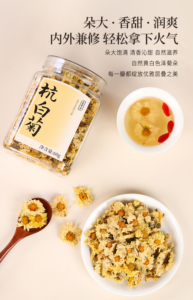正安 浙江桐乡杭白菊 只取头茬花 朵大香甜润爽 轻松拿下火气 优质原材 60g/罐