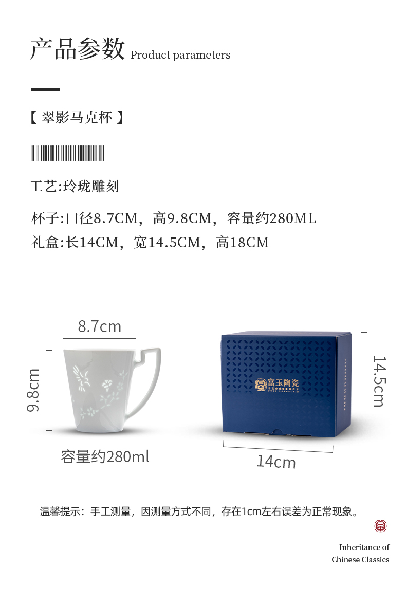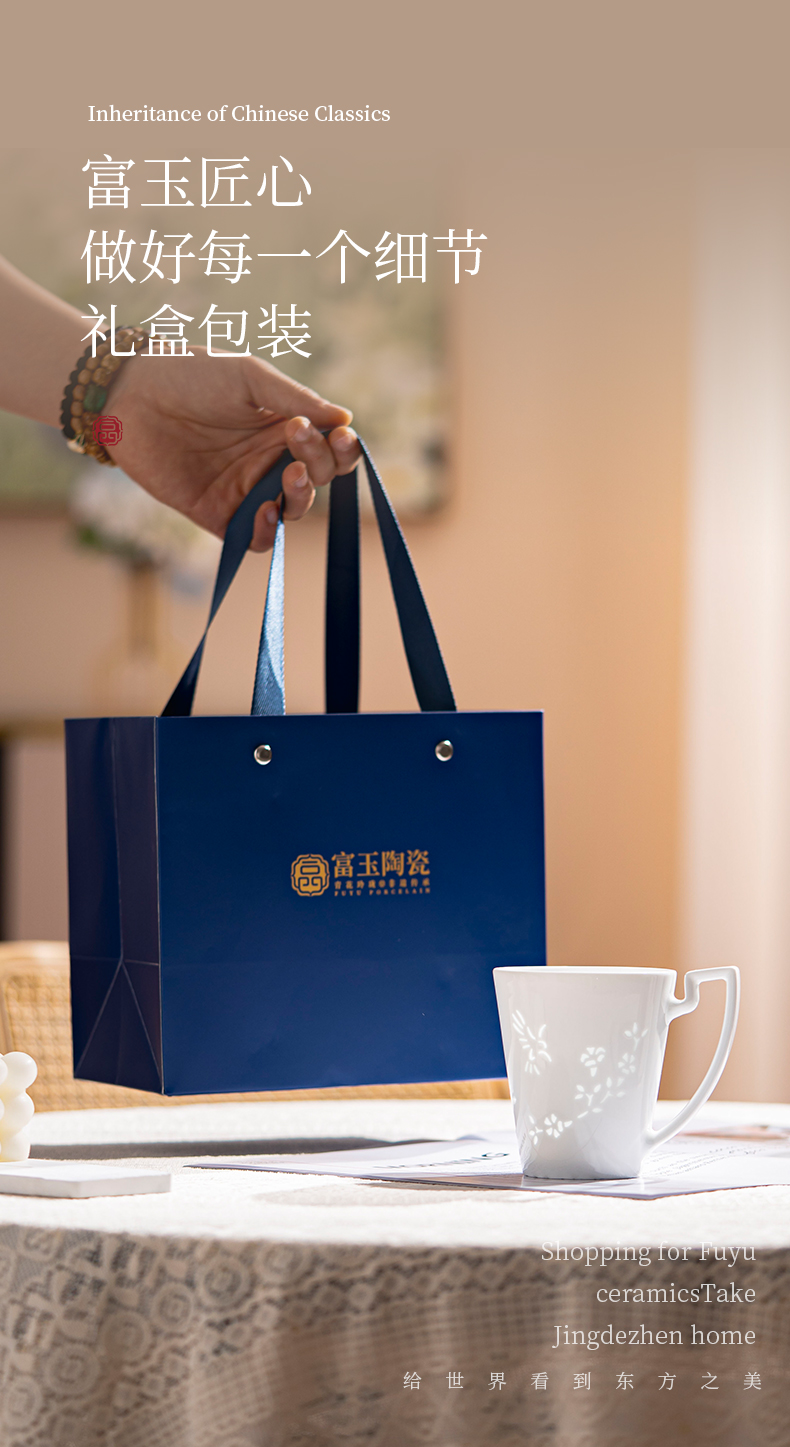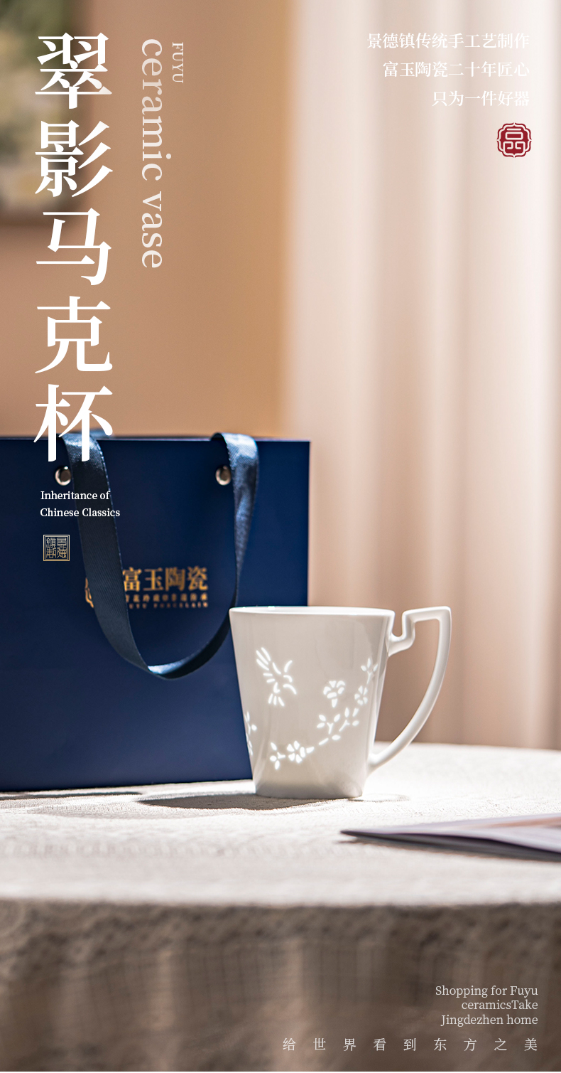 景德镇富玉陶瓷翠影马克杯高级感轻奢大容量水杯女2025新款高颜值杯子