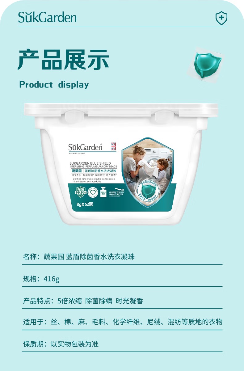 蔬果园蓝盾除菌香水洗衣凝珠52颗