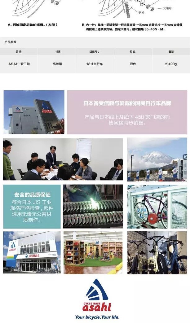 日本ASAHI 爱三希儿童车自行车 银色 单支车踢后支架梯子边撑