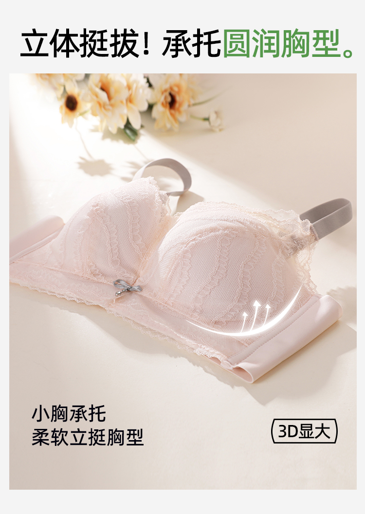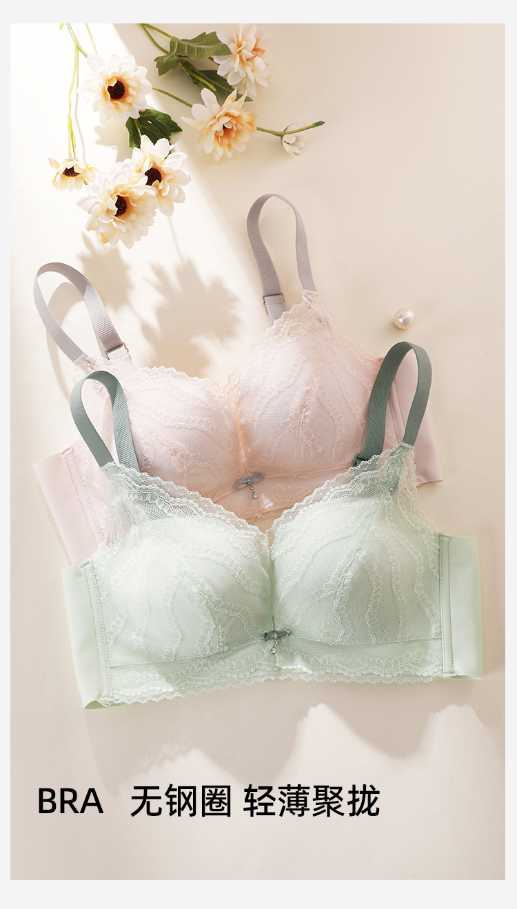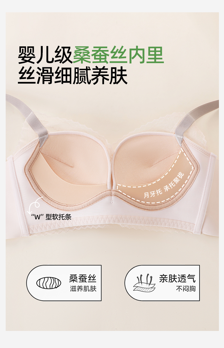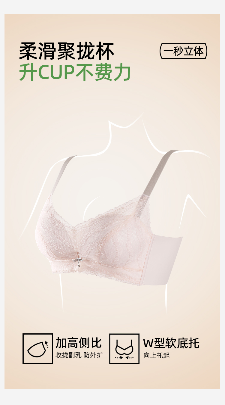 熳洁儿 小胸聚拢中薄蚕丝养护杯柔滑杯蕾丝立挺显大26261503
