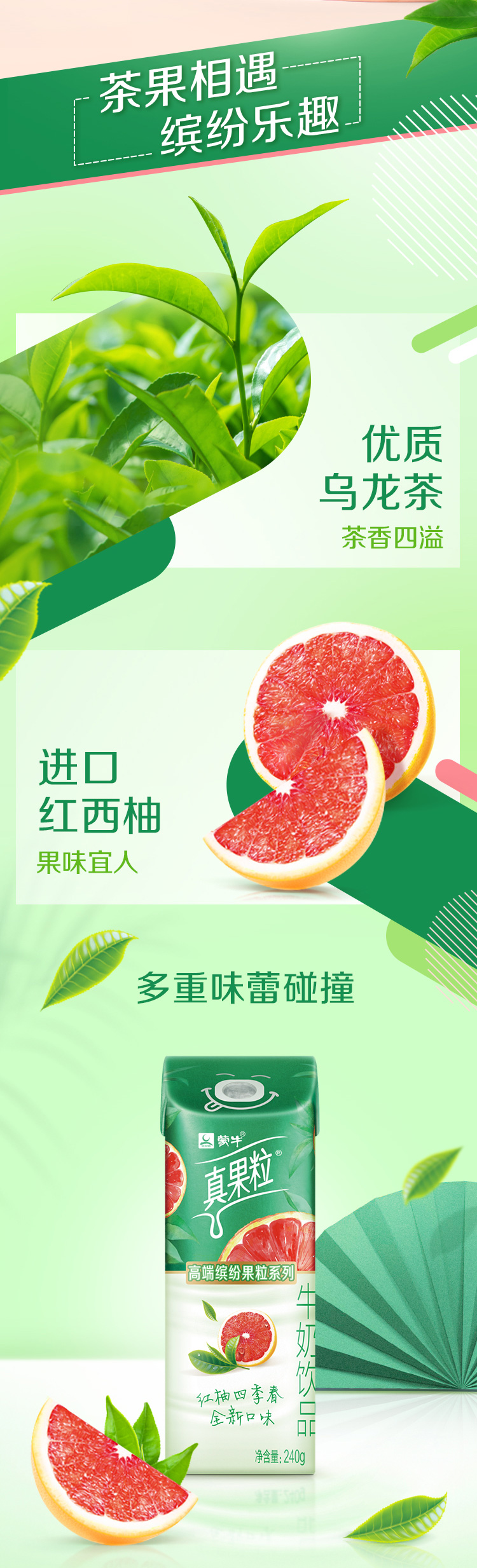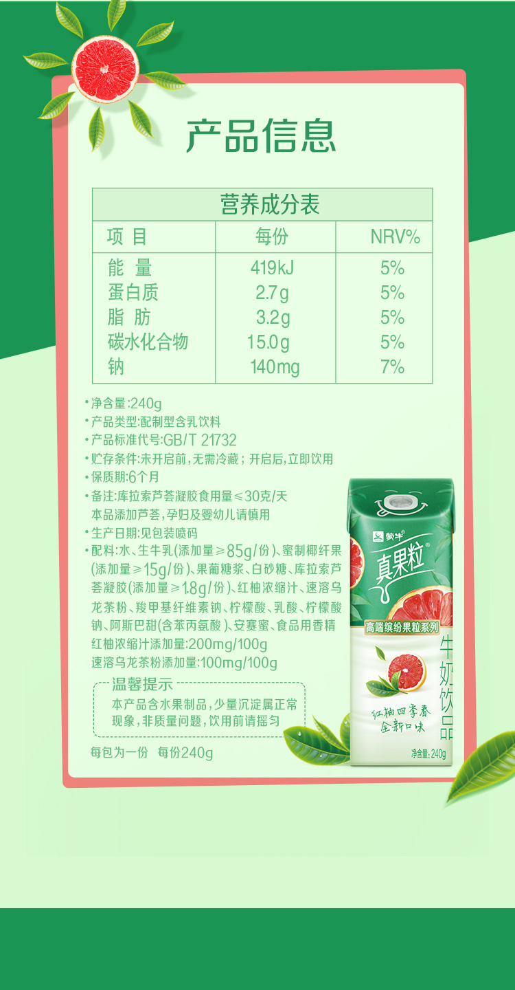 蒙牛高端真果粒红柚四季春味240g*10盒