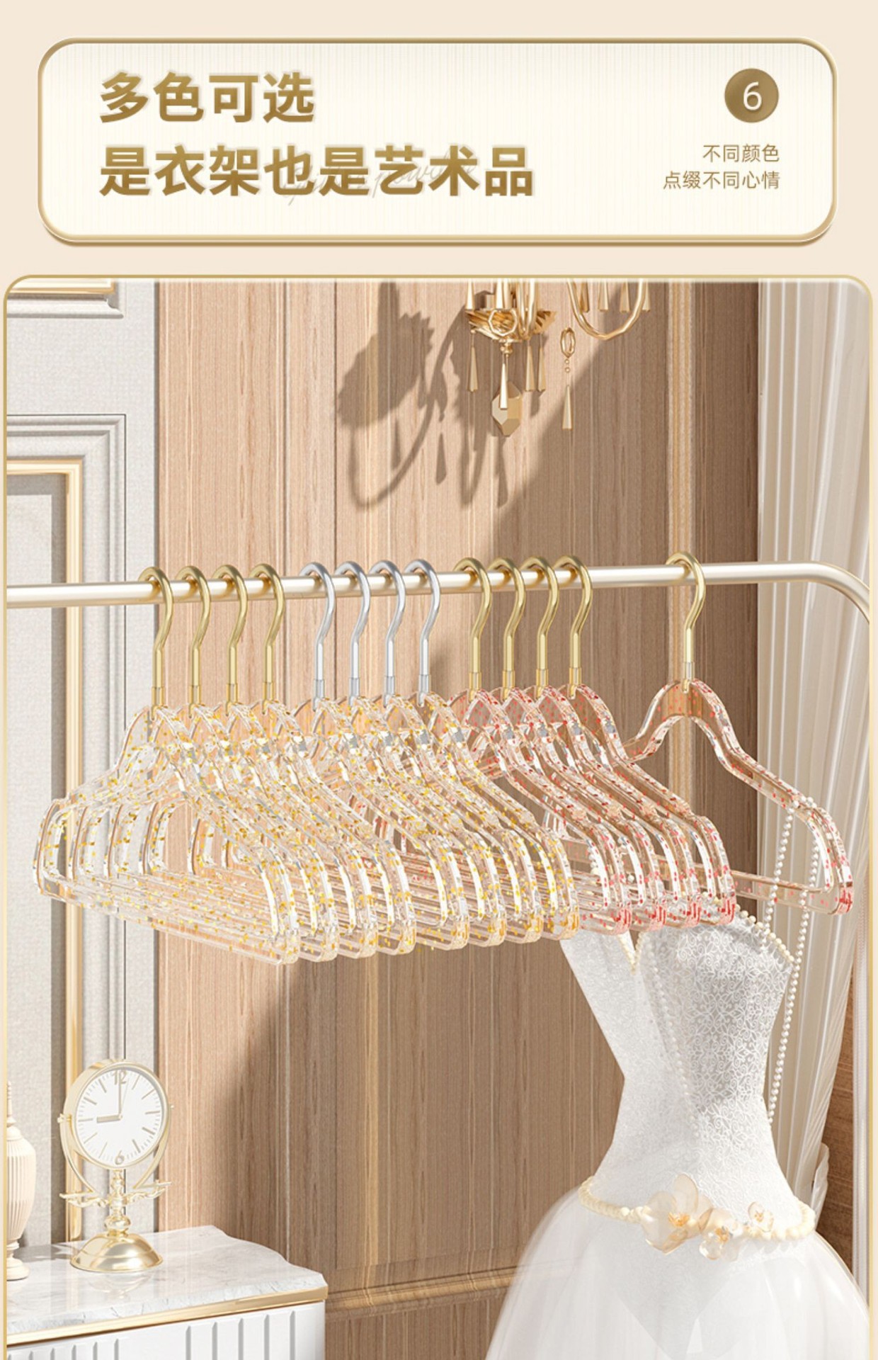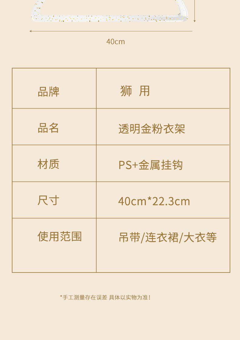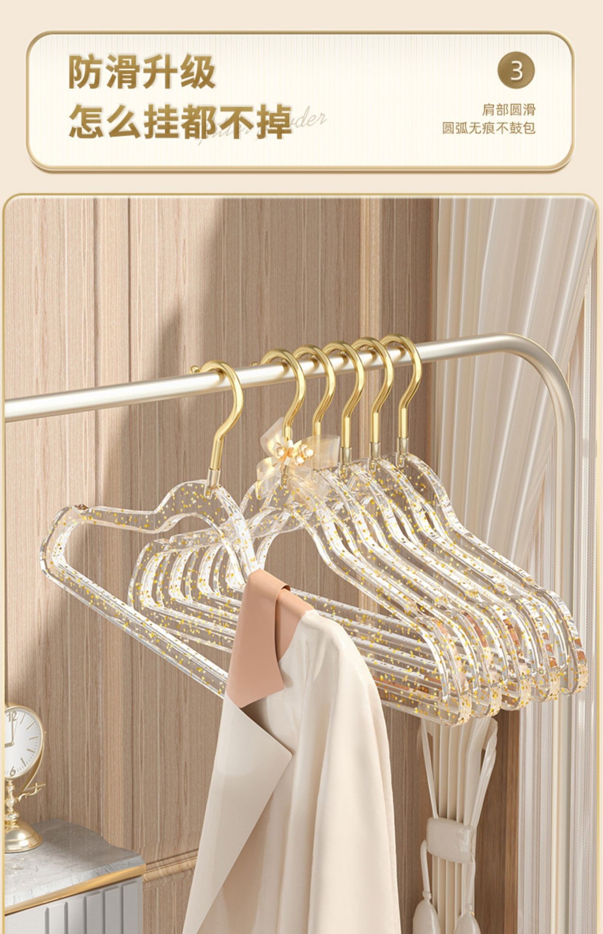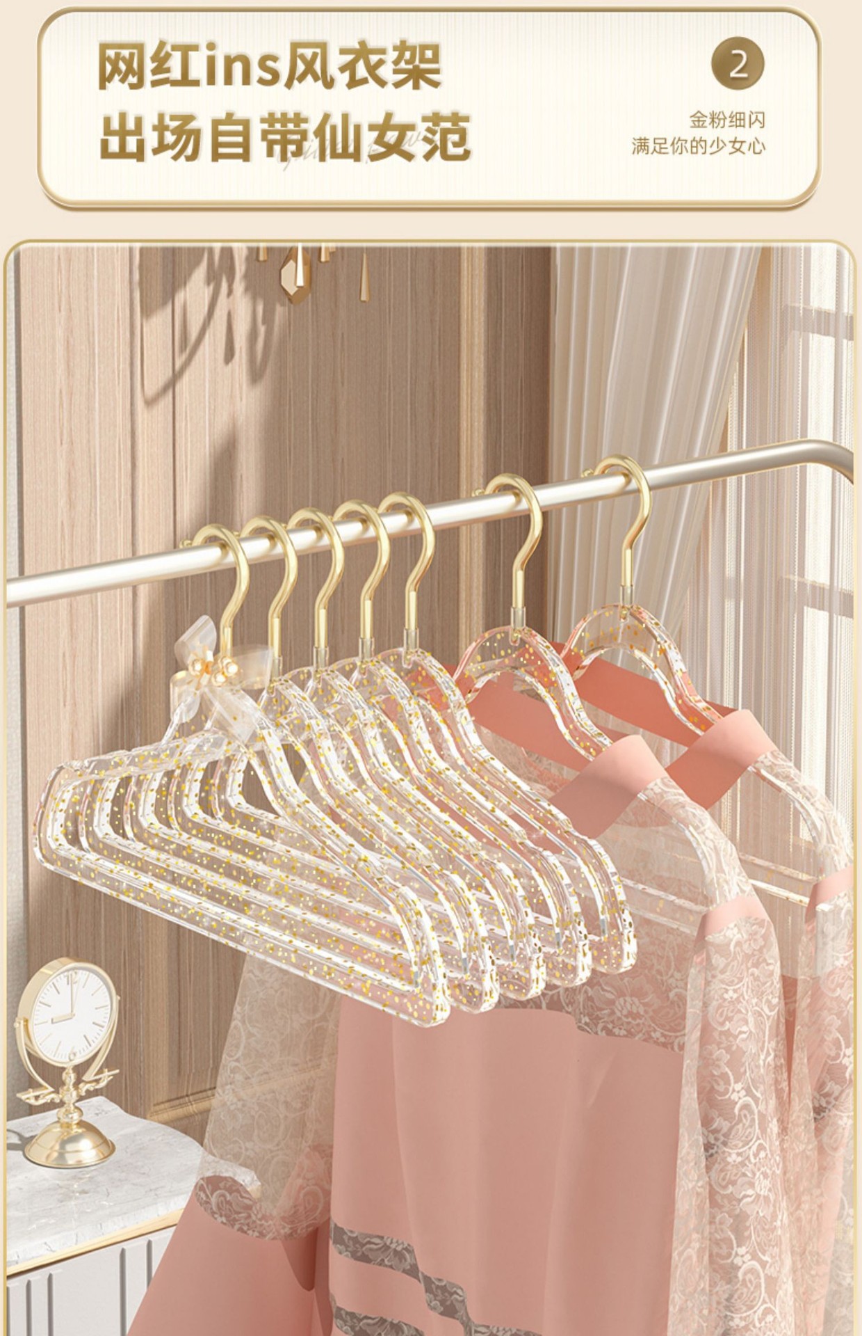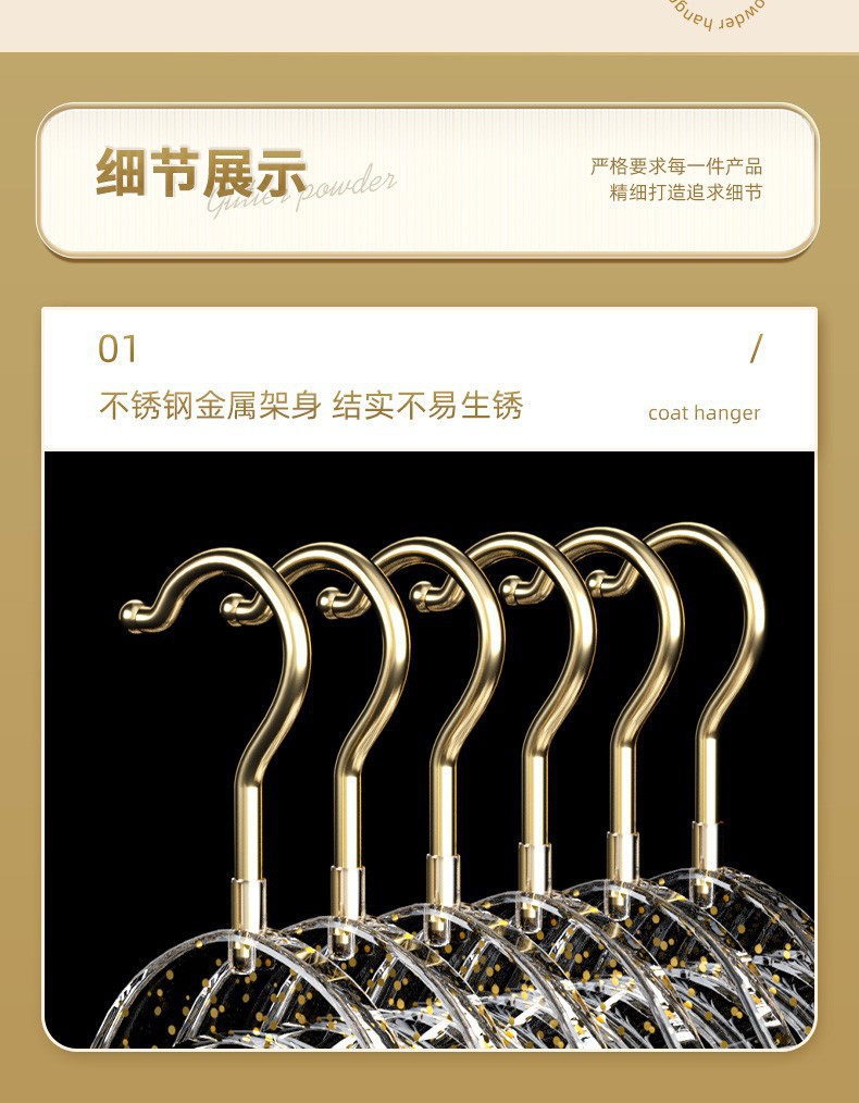 「10支装!“仙女”闪粉衣架」透明衣架家用挂衣无痕防滑衣服挂架 轻奢服装店用晾衣撑子收纳整理