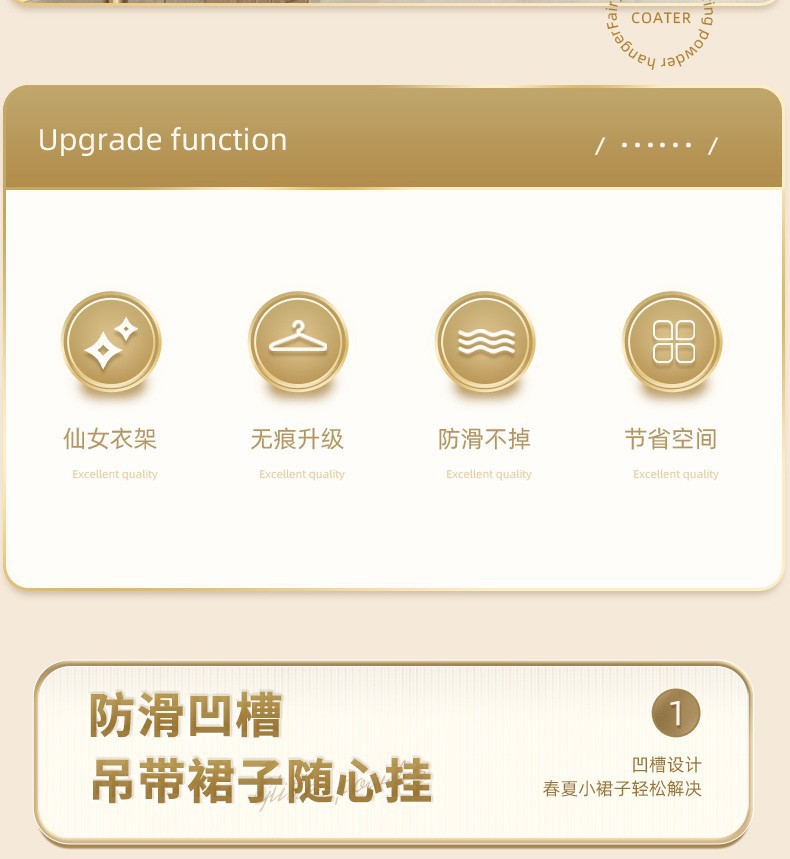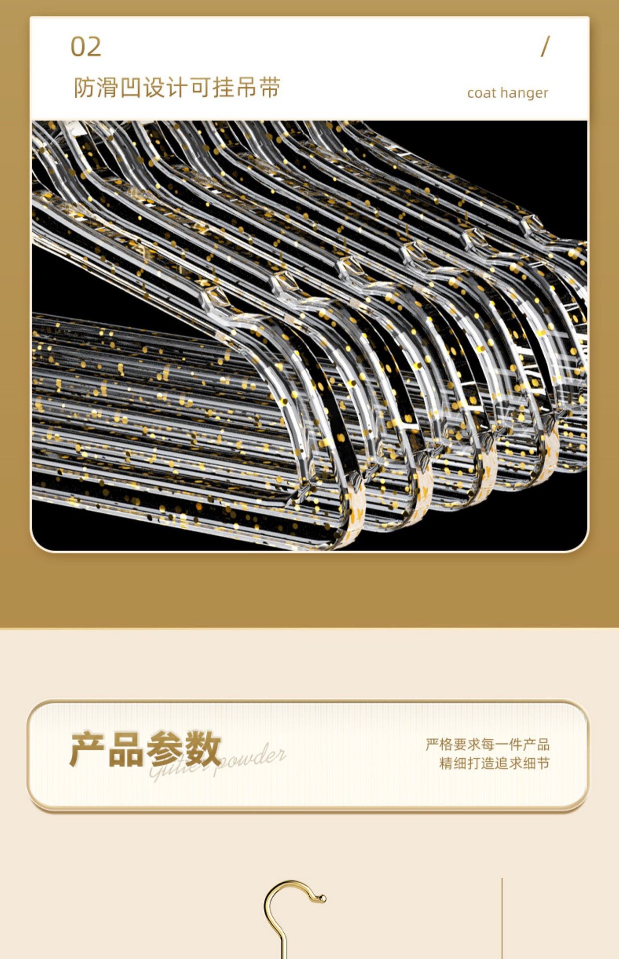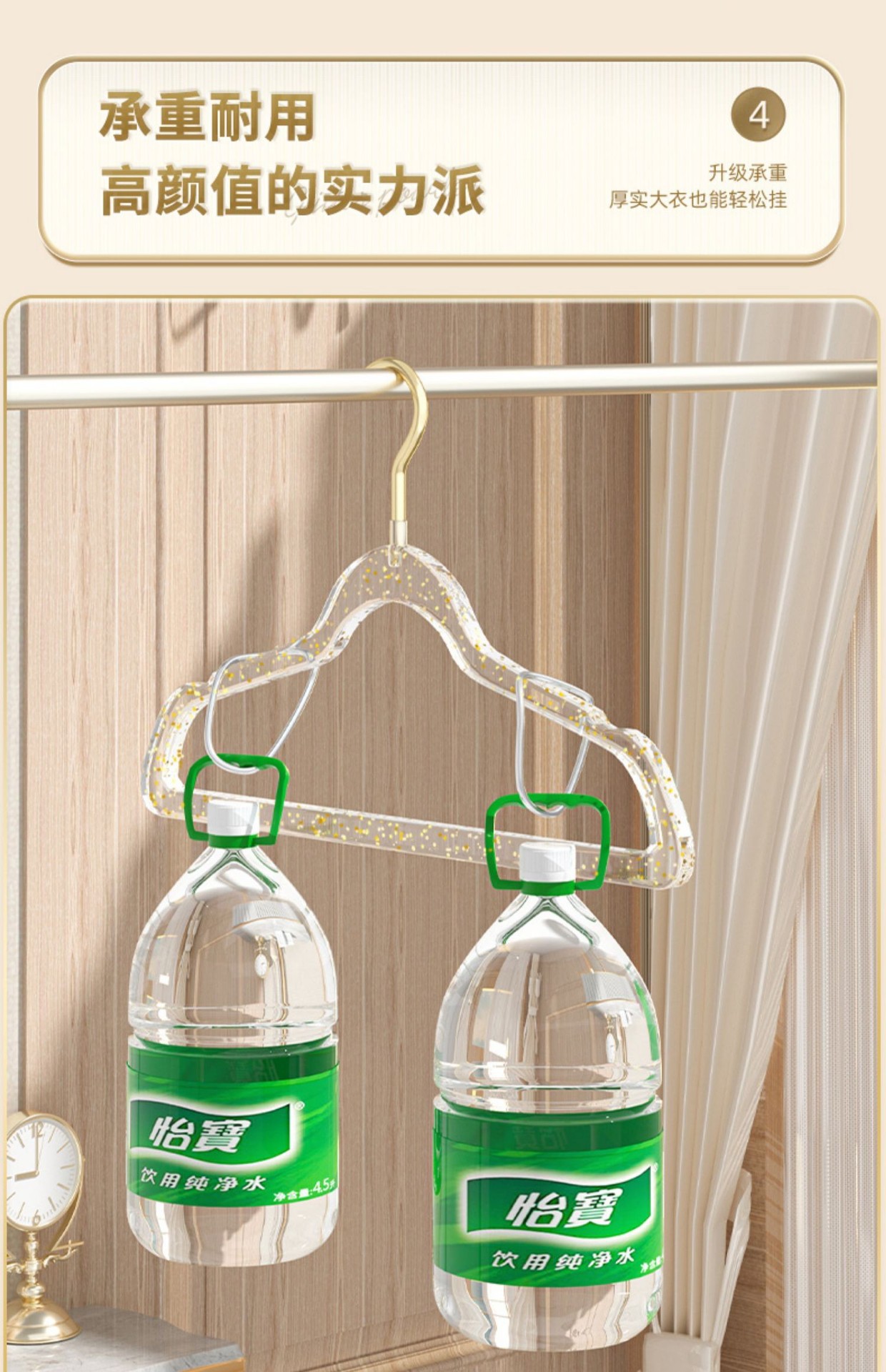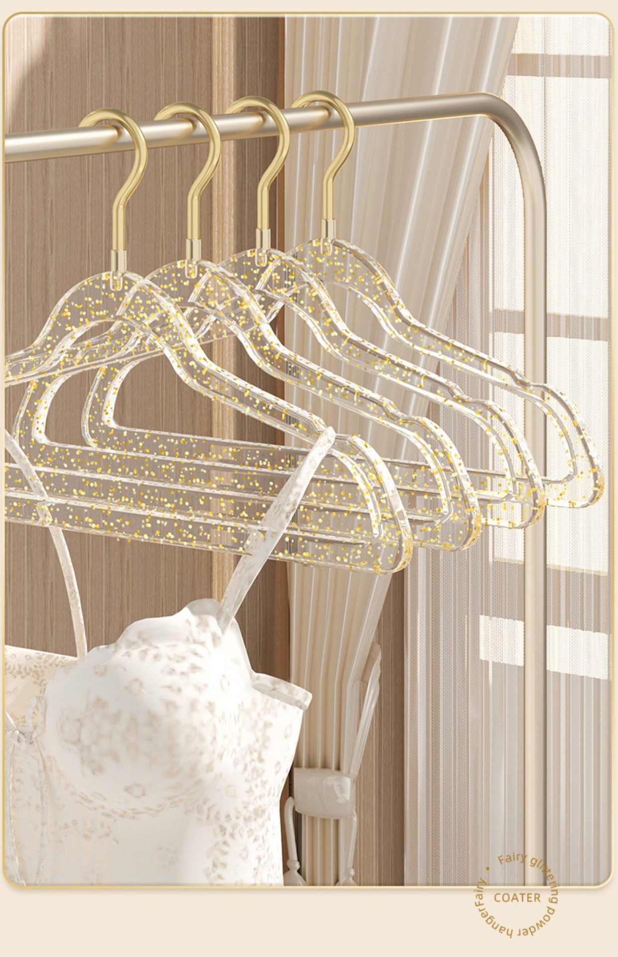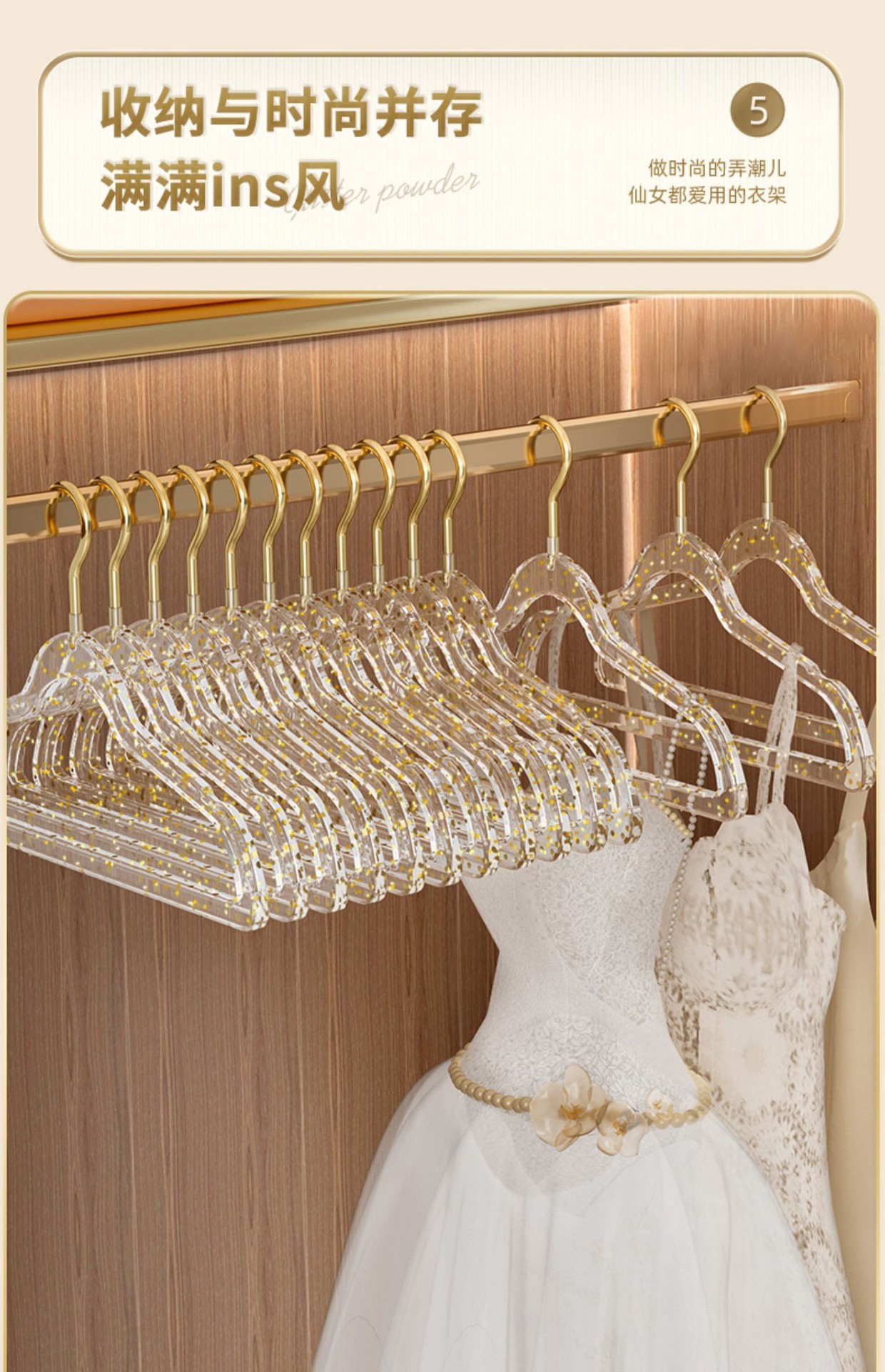 「10支装!“仙女”闪粉衣架」透明衣架家用挂衣无痕防滑衣服挂架 轻奢服装店用晾衣撑子收纳整理