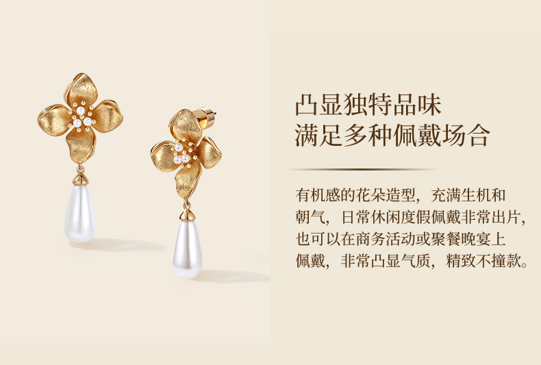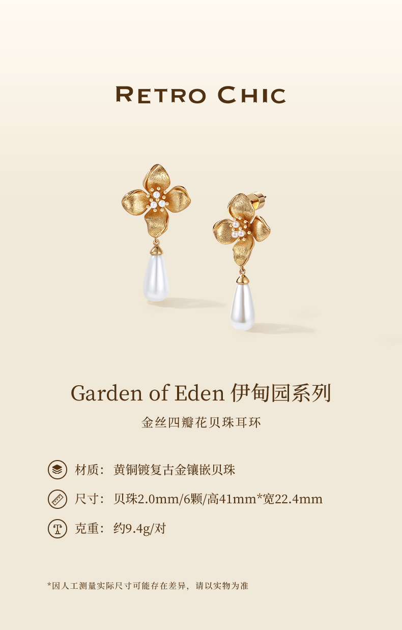【佟丽娅同款】Garden of Eden 伊甸园系列 | 金丝四瓣花贝珠耳环