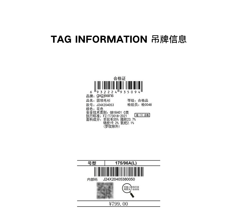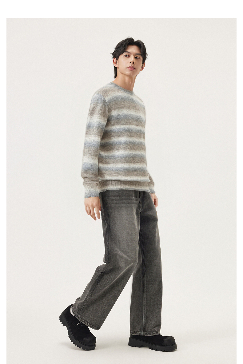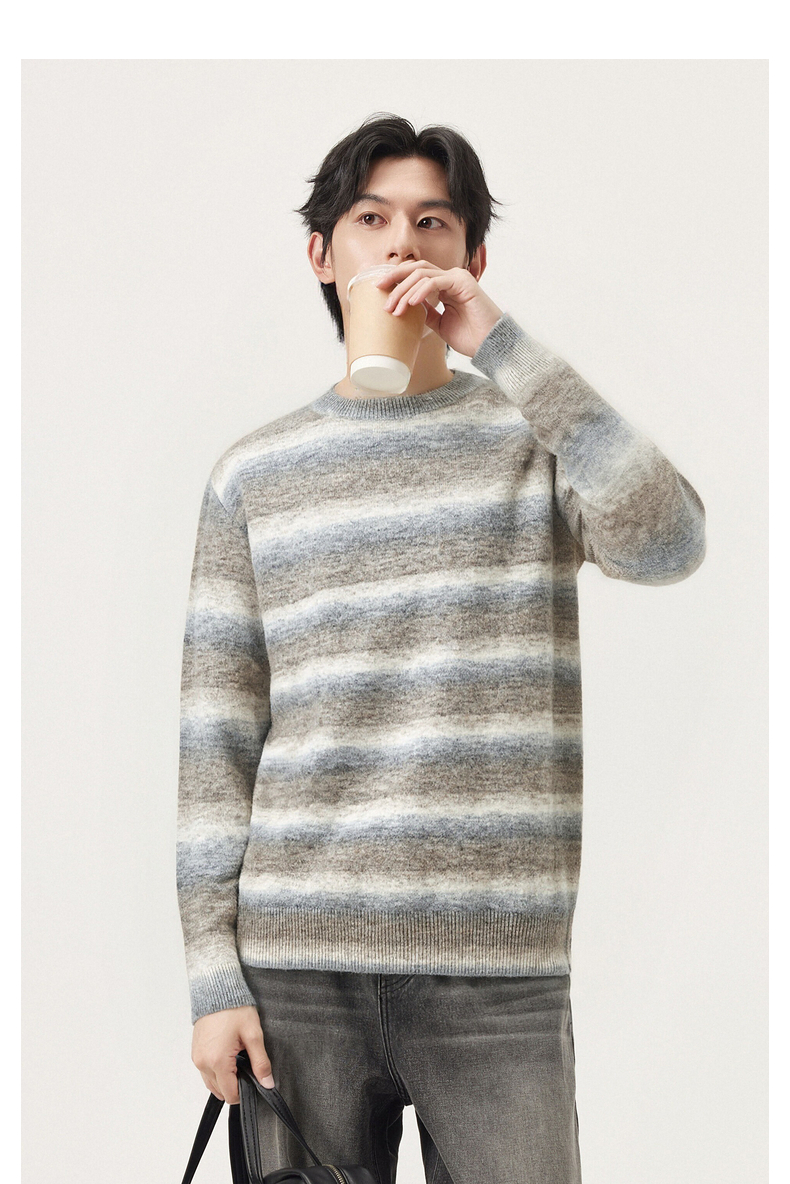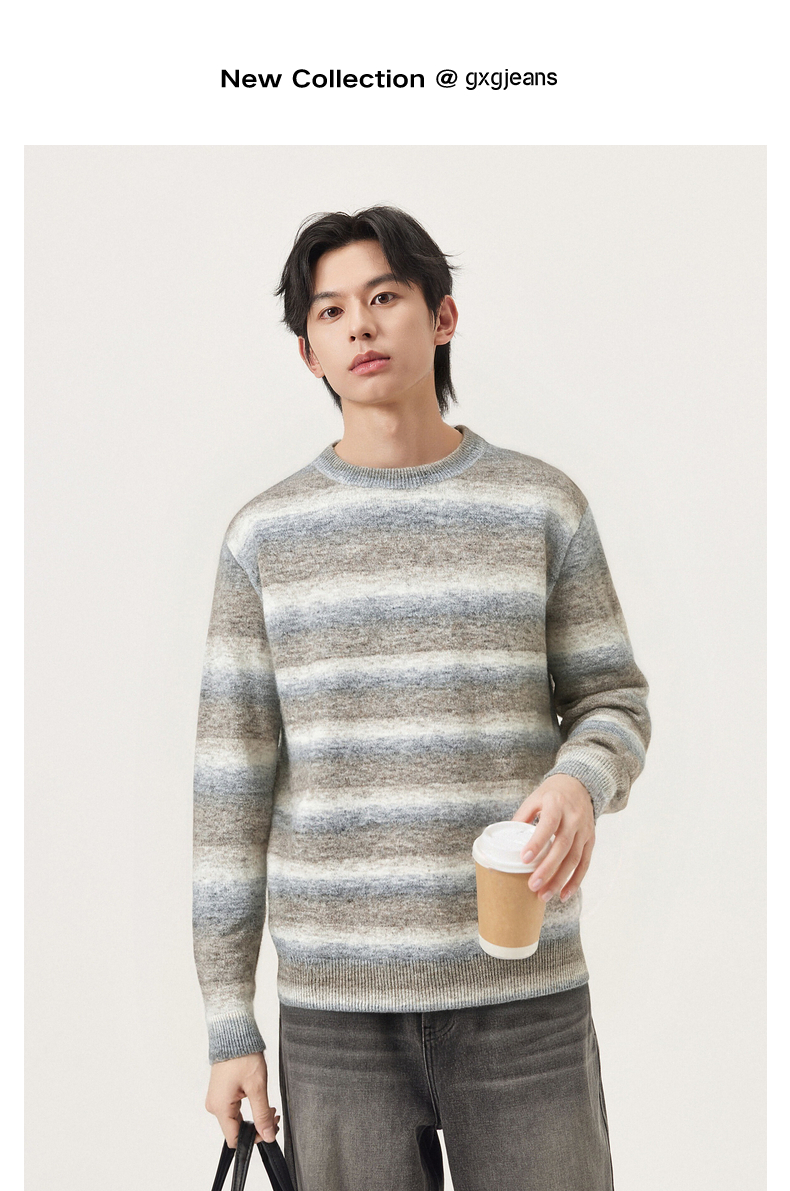 gxg.jeans男装冬季条纹圆领毛衫J24X204053