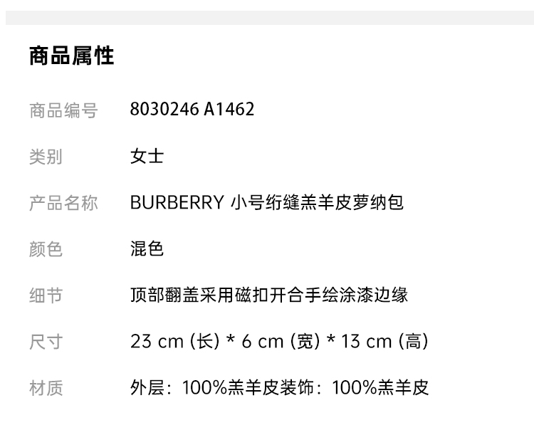 BURBERRY 博柏利 Lola系列 小号白色灰色黄色饰边绗缝三色羔羊皮萝纳包斜跨单肩包 女士单肩包 混色 8030246 A1462