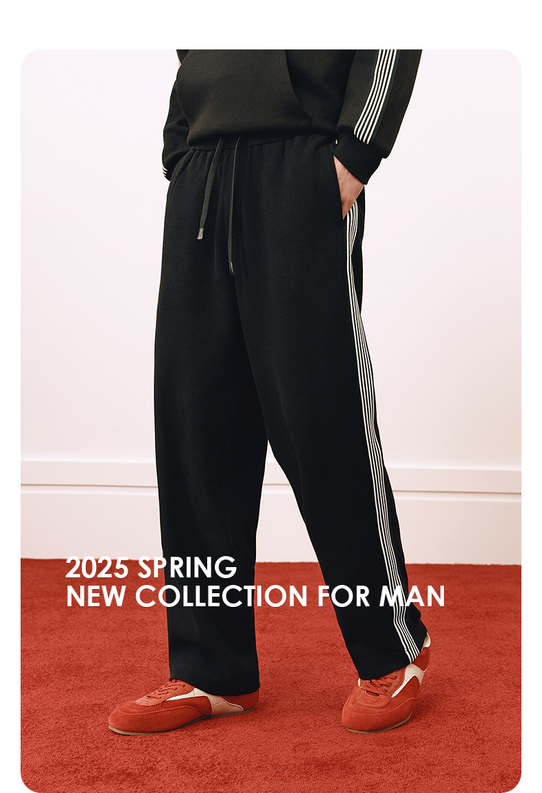 GXG男装 侧边条纹宽松卫裤男通勤长裤25春季热卖G25X021043