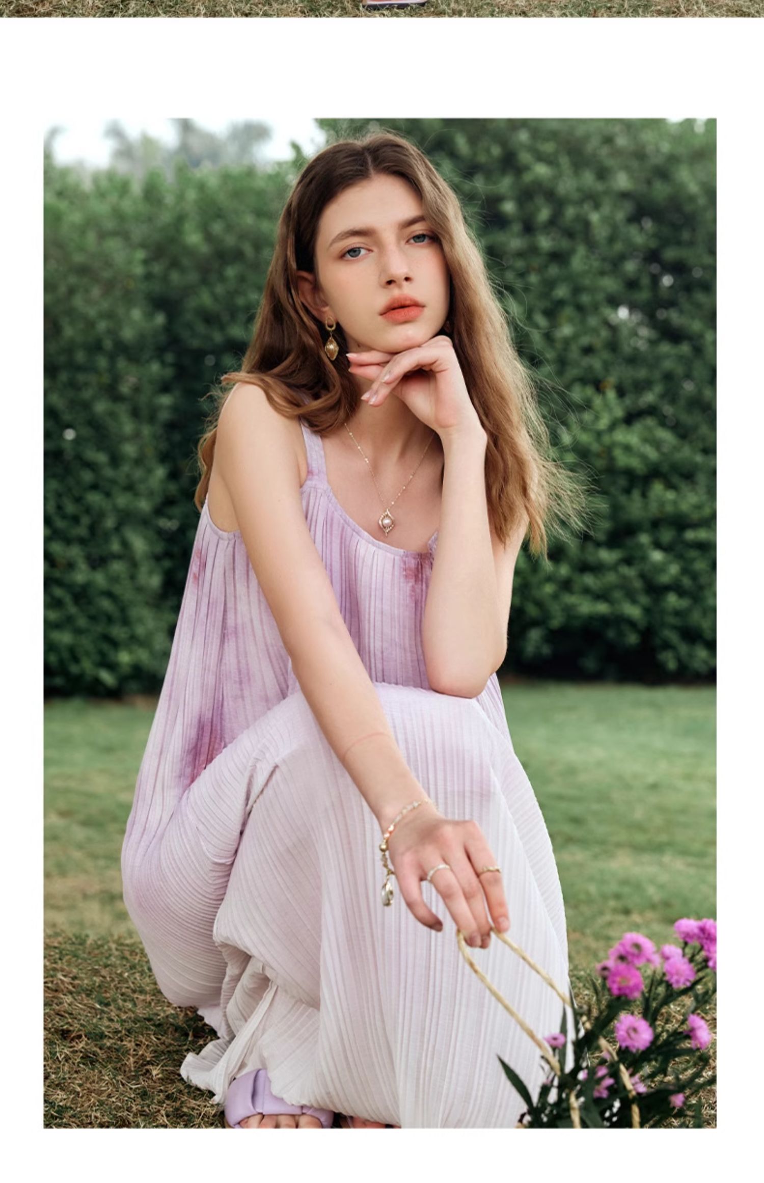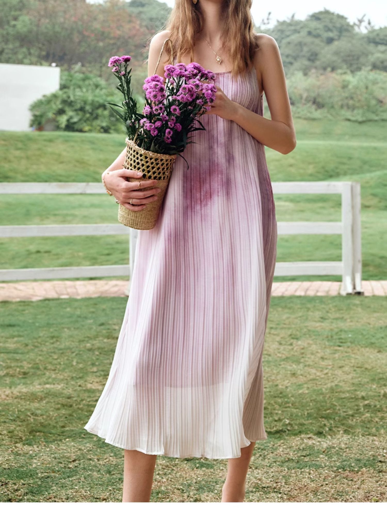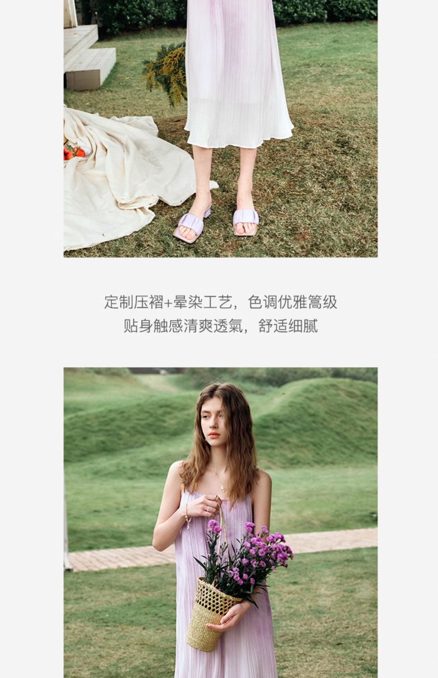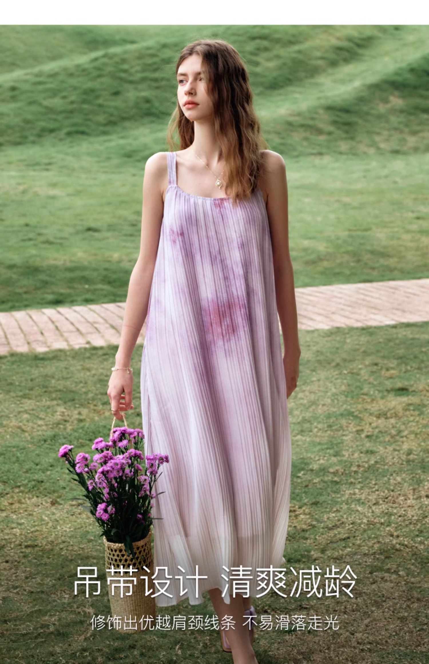 OLrain欧芮儿吊带连衣裙女夏季2024年新款时尚减龄度假风压褶长裙