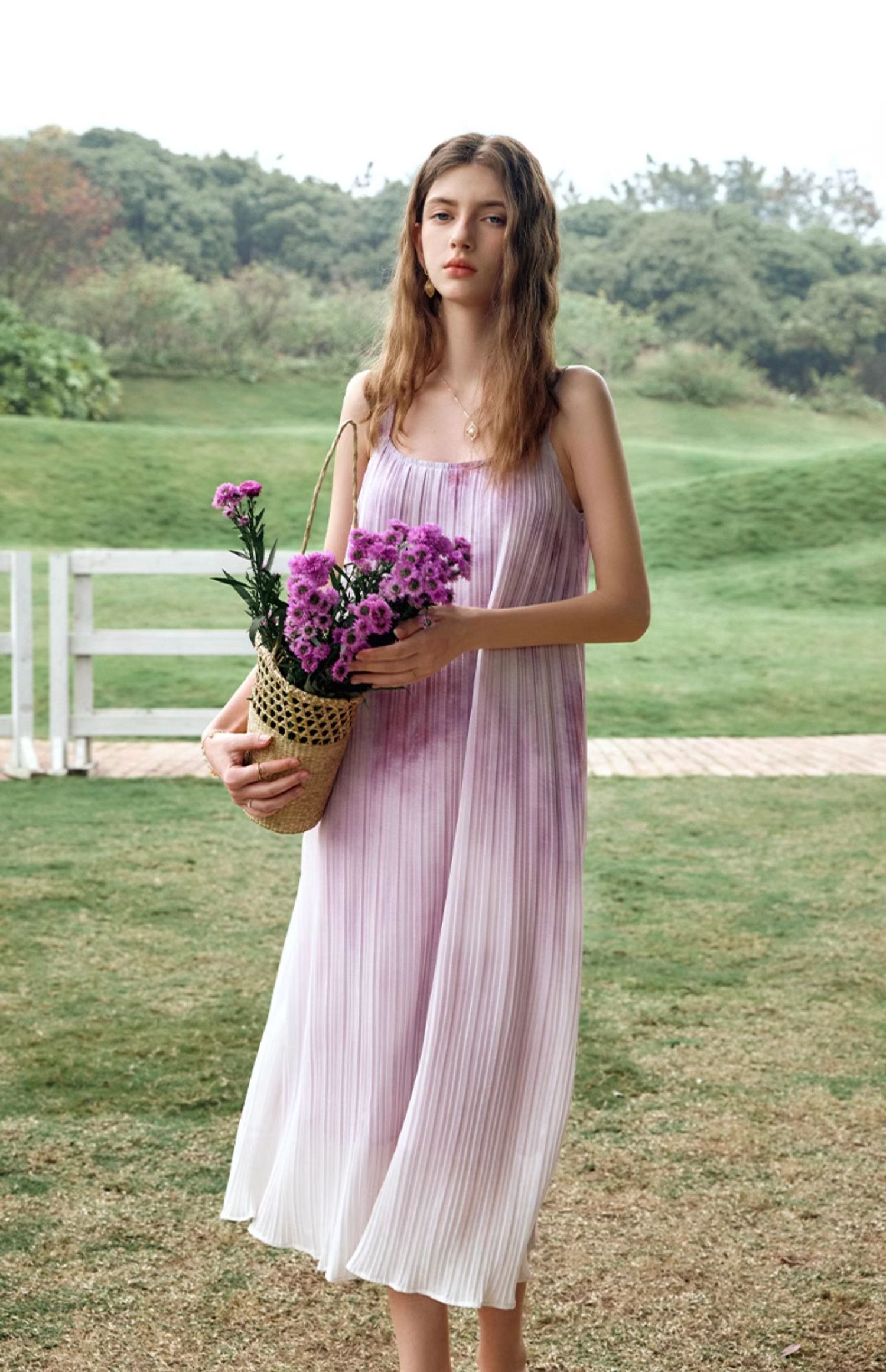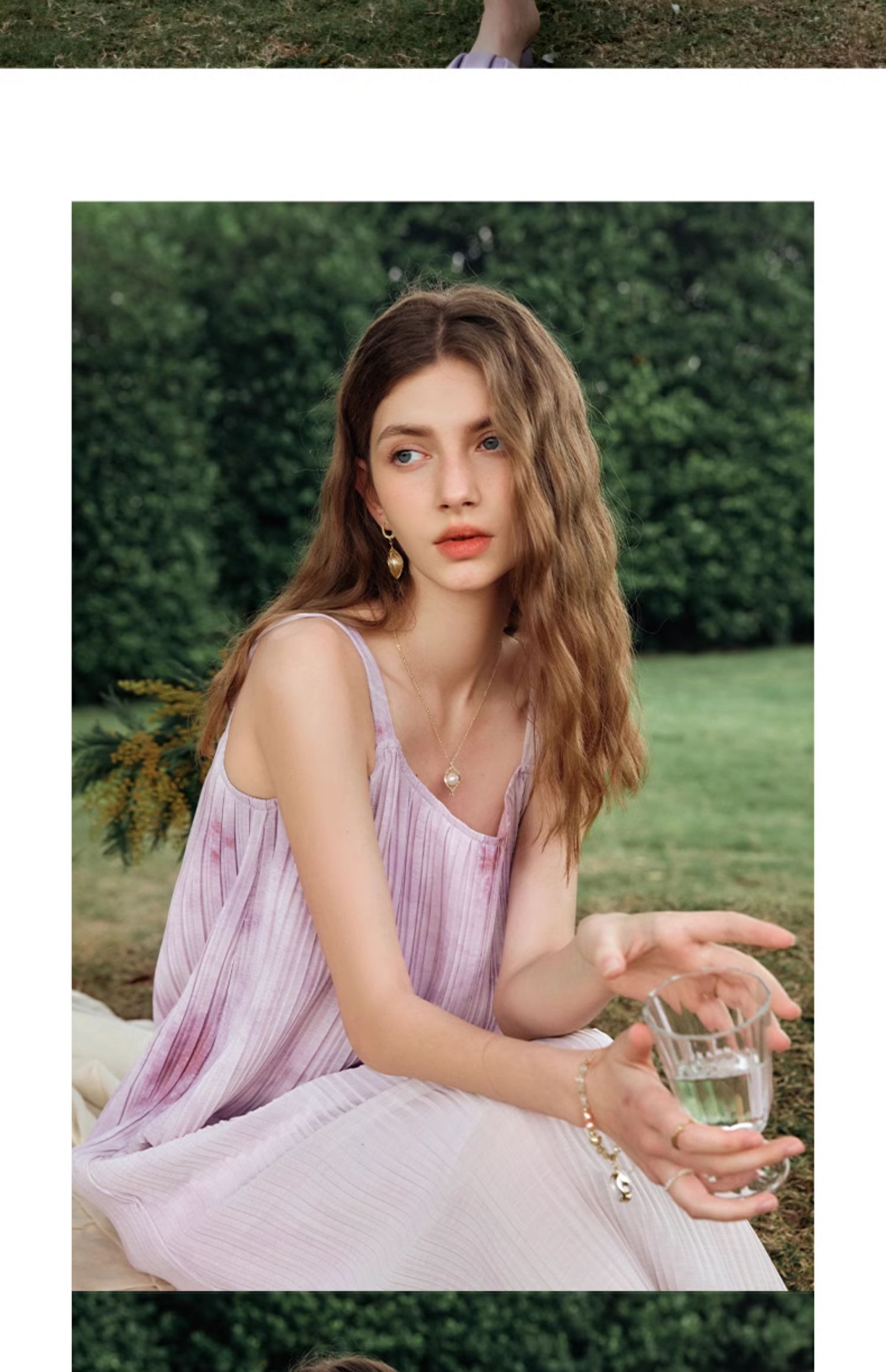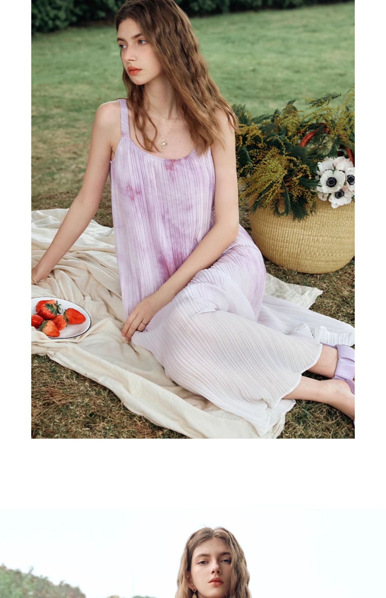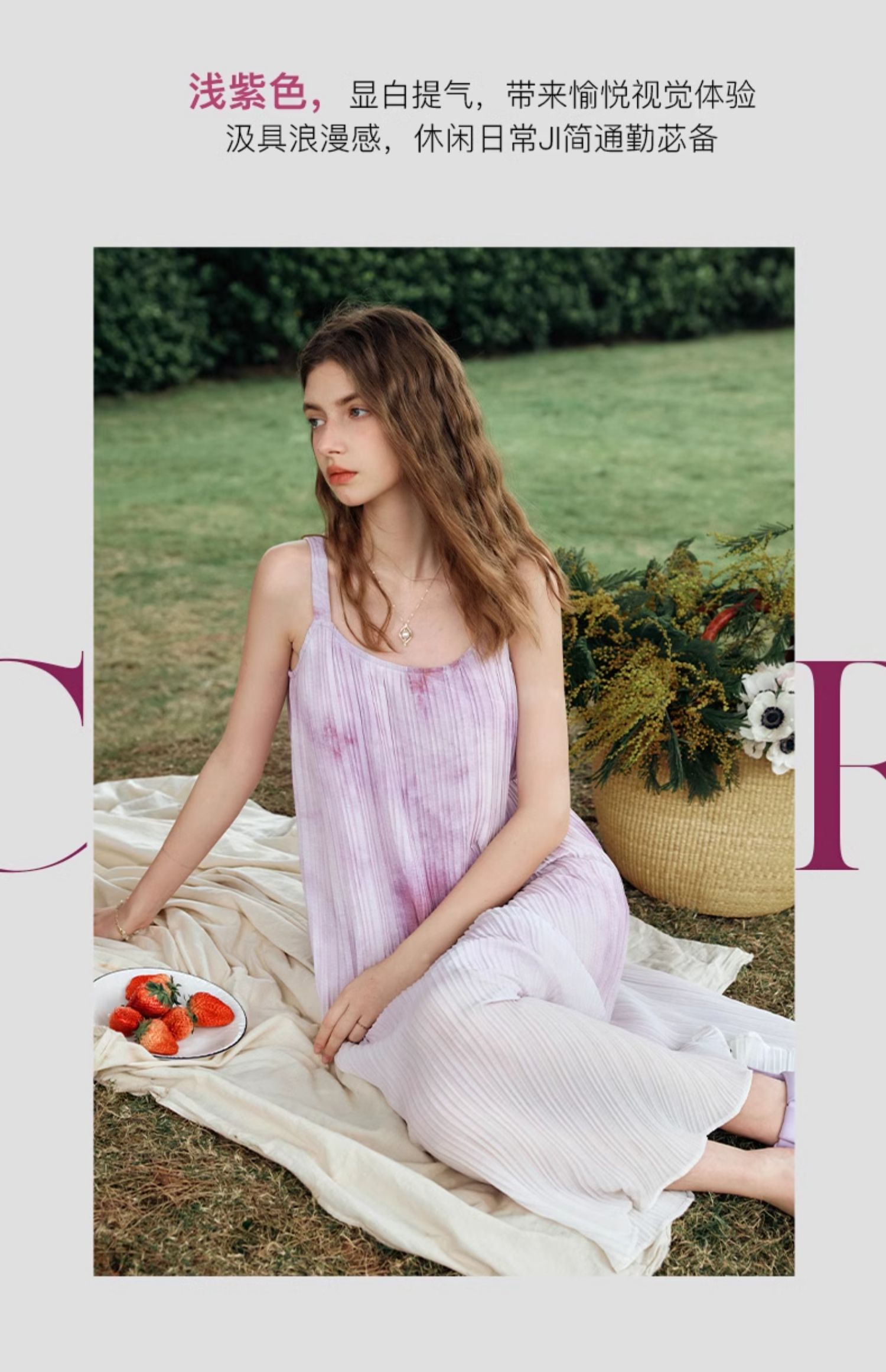 OLrain欧芮儿吊带连衣裙女夏季2024年新款时尚减龄度假风压褶长裙