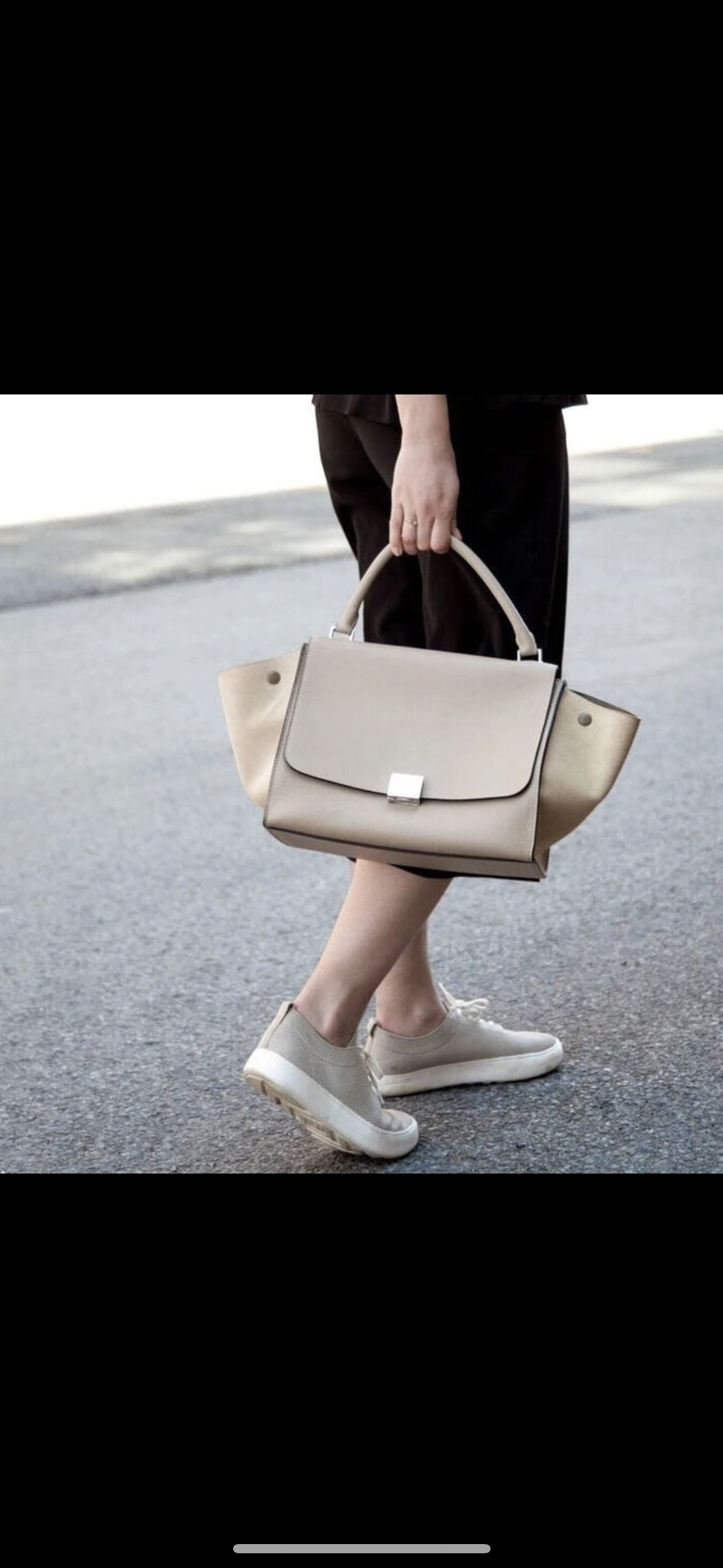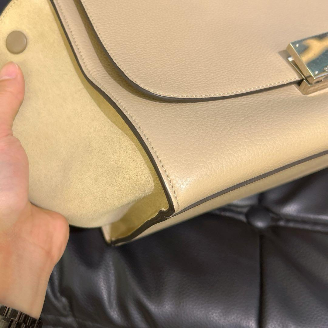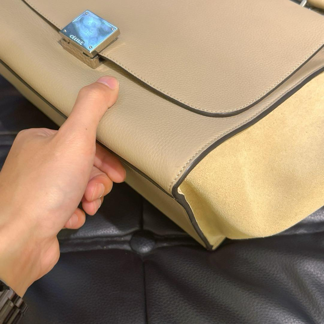 【商品詳情】正品二手 CELINE 小号 奶茶色 牛皮 trapeze 秋千包🎟️ 97新 27*22 配件:肩带 防尘袋。内包口两侧有小磨损 包型轻微使用感。简约时髦款