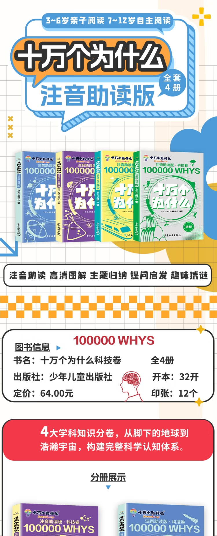 十万个为什么注音版 科技卷(全4册)