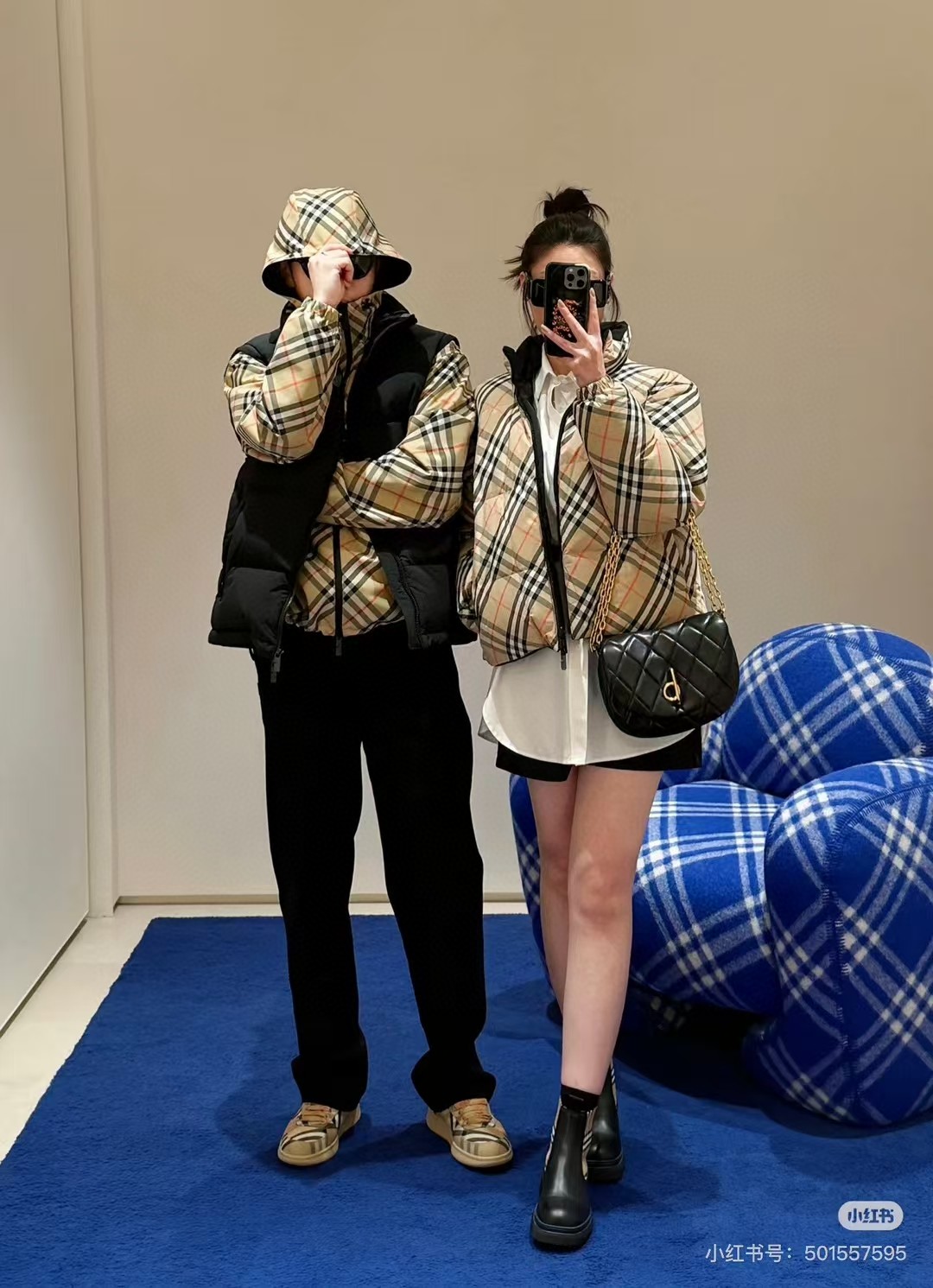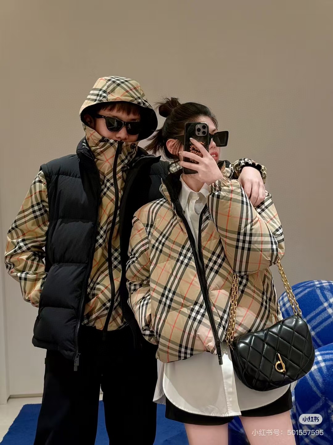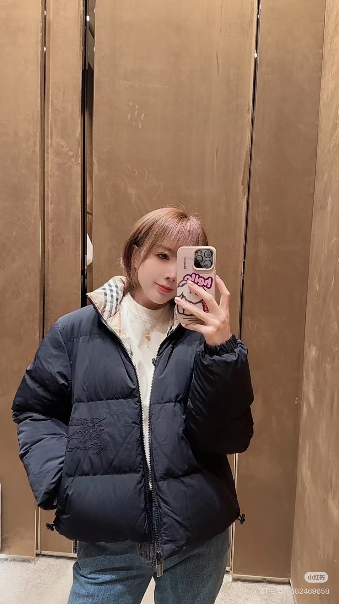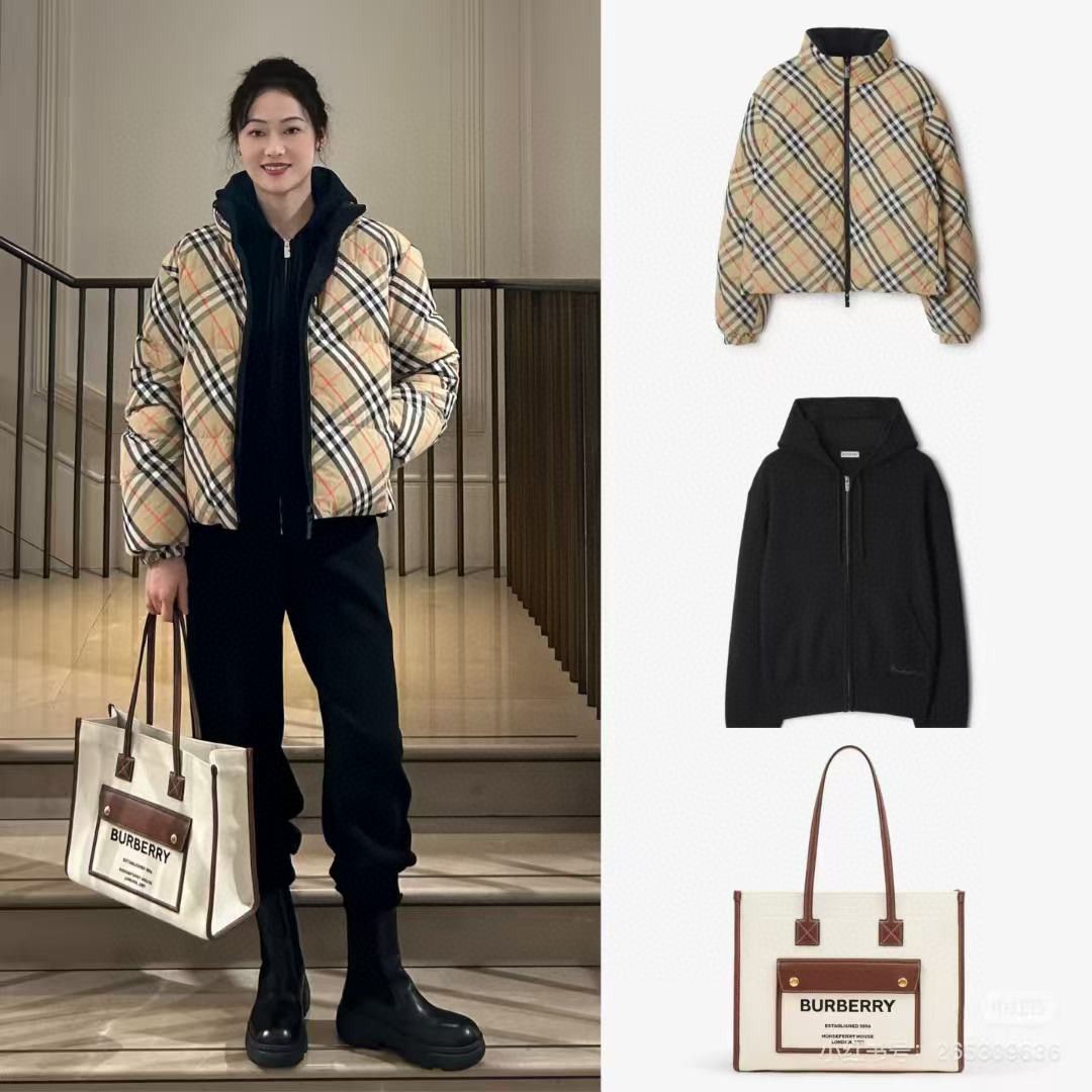 Bur 秋冬爆款 鹅绒 复古战马刺绣 双面可穿经典格纹 百搭减龄舒适保暖时尚经典款保暖时尚青春有个性洋气时髦显瘦