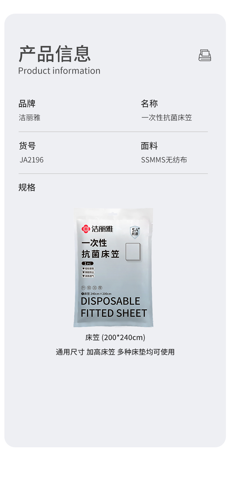 洁丽雅一次性床笠床罩防尘遮灰尘罩床套床垫保护罩床铺盖布床单