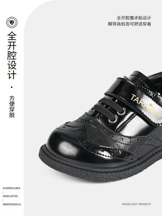 泰兰尼斯春季新款男宝宝童鞋儿童黑色软底复古礼服鞋演出女童皮鞋