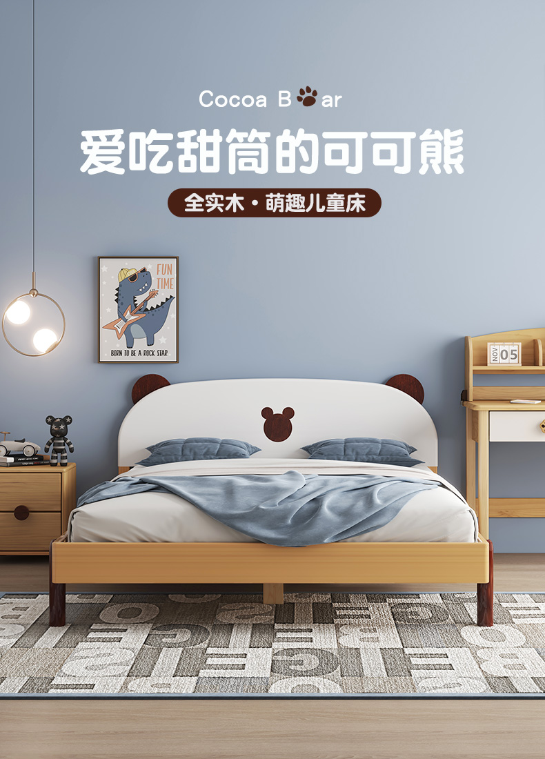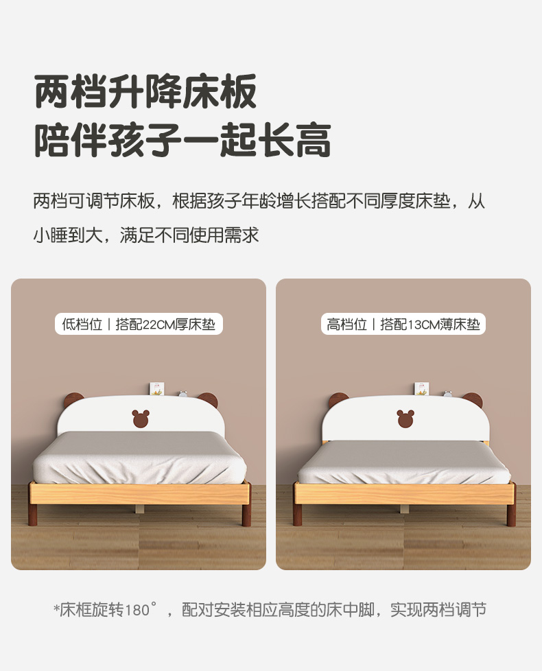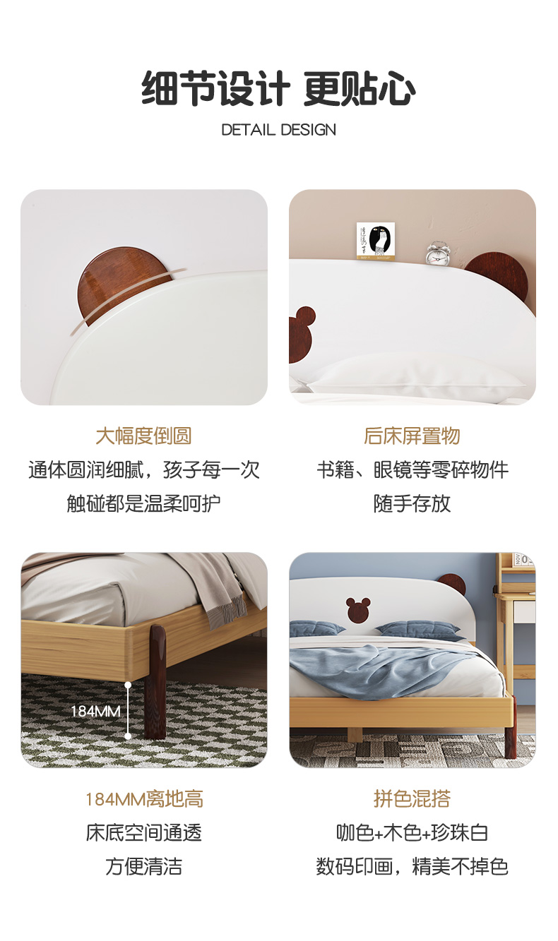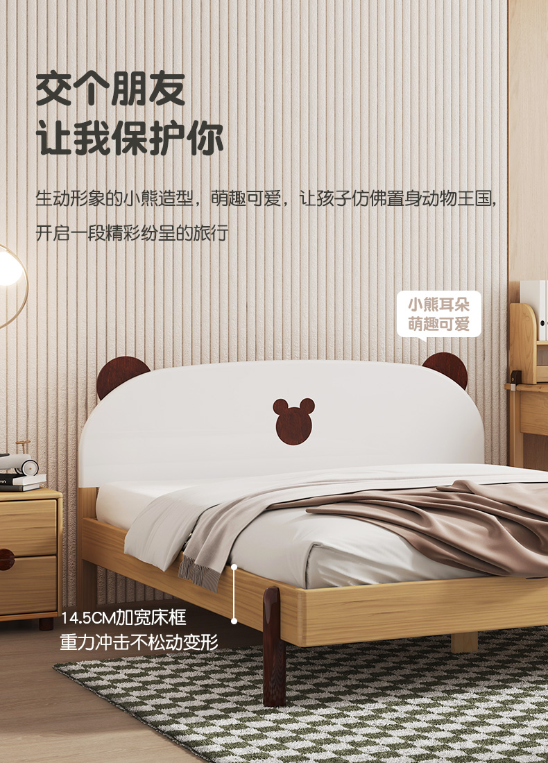 喜梦宝现代简约女孩男孩儿童床橡胶木可升降床板 小熊床