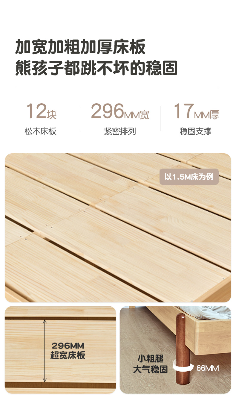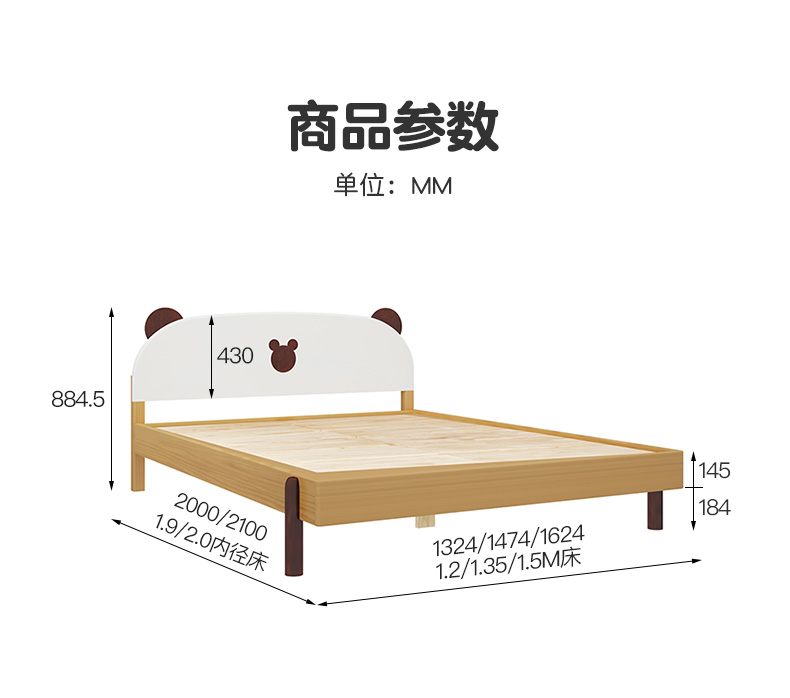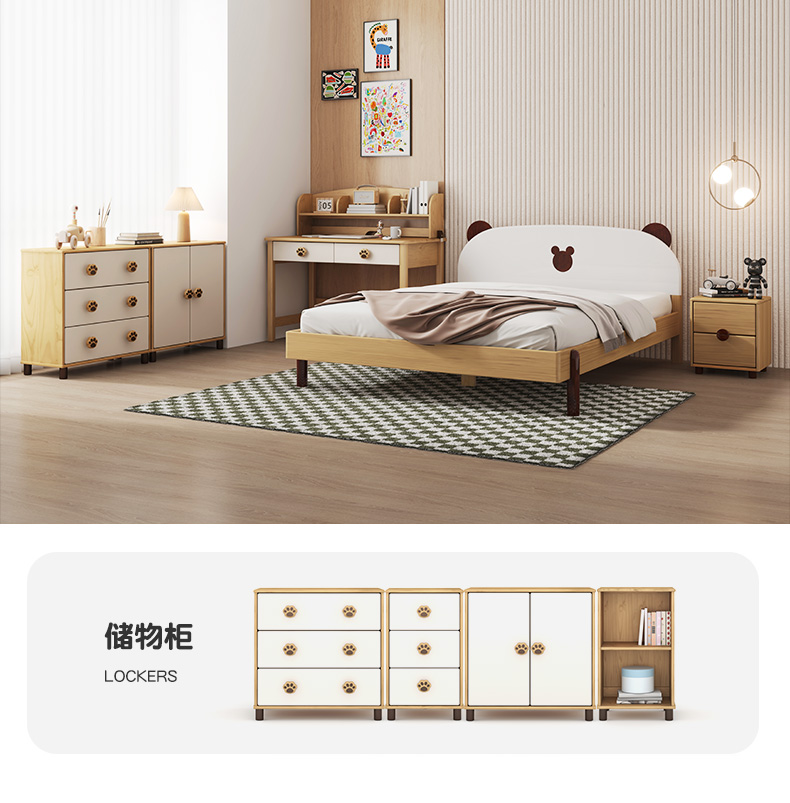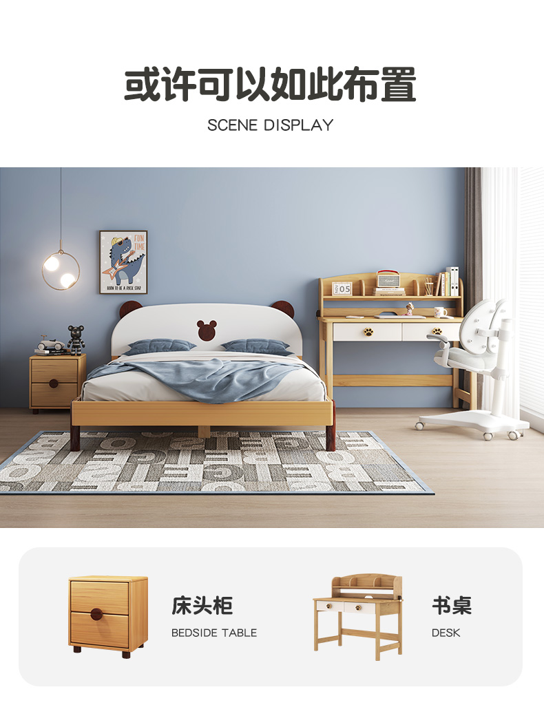 喜梦宝现代简约女孩男孩儿童床橡胶木可升降床板 小熊床