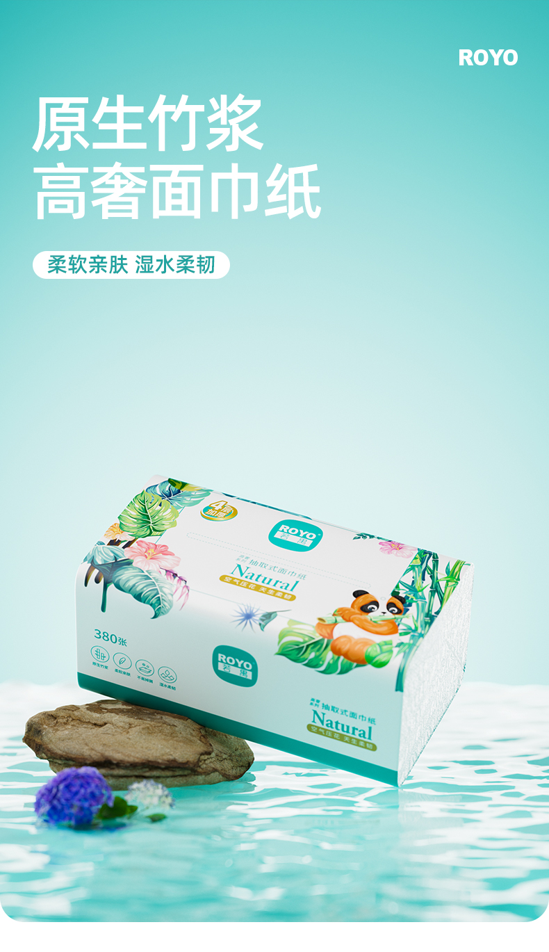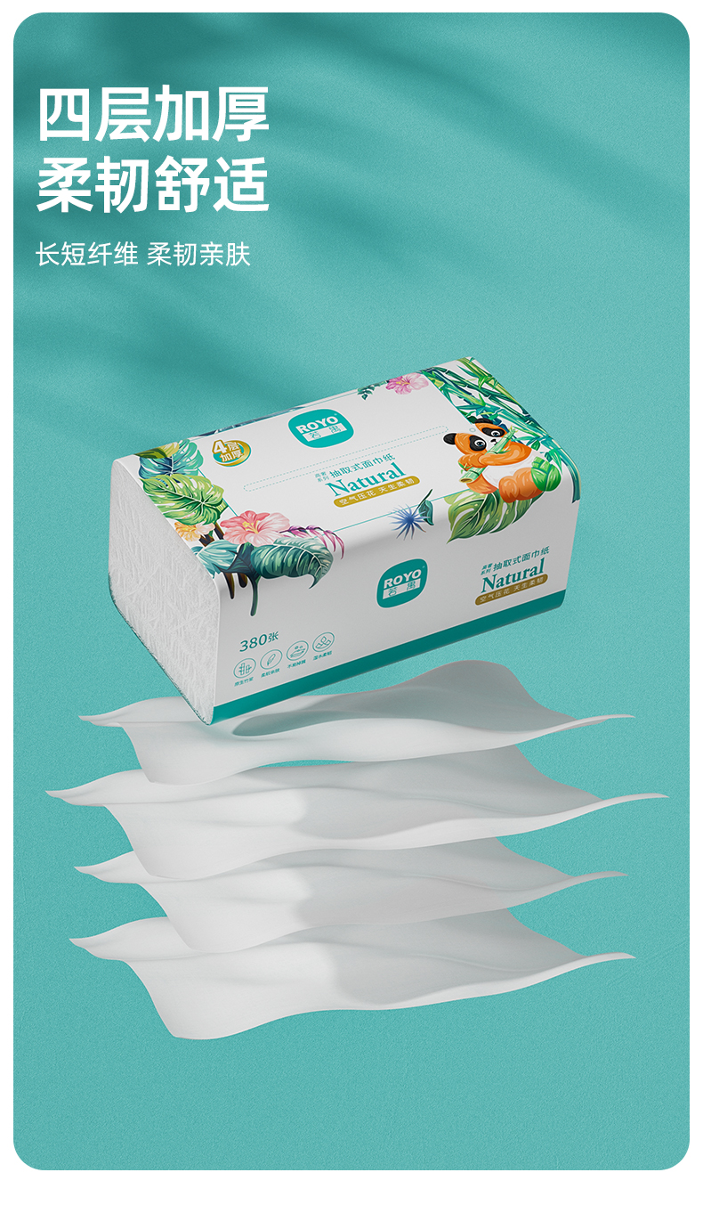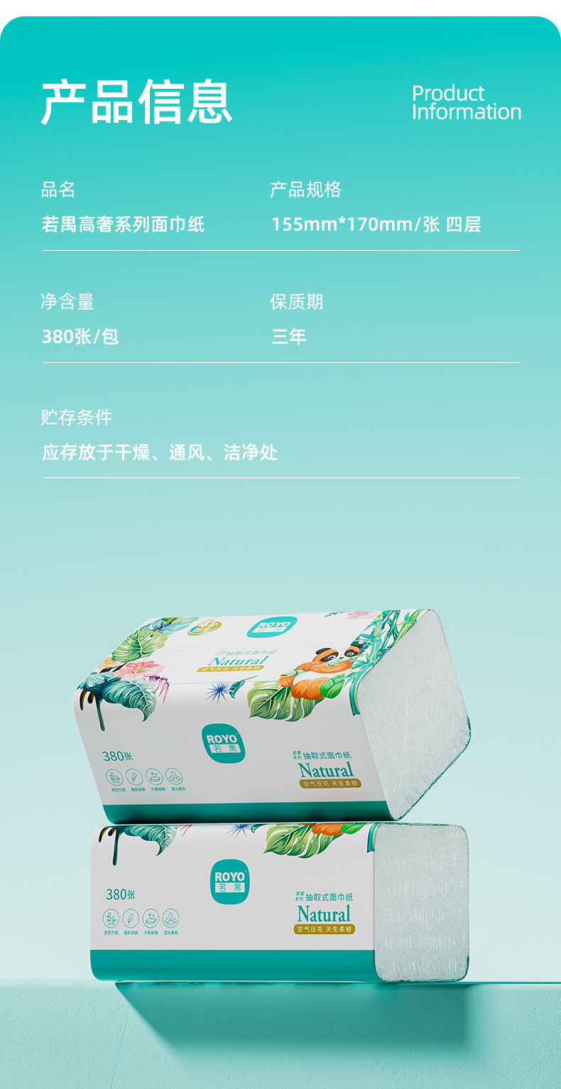 若禺软抽纸高奢竹林禺宝系列4层加厚380张/包原生竹浆1件2包 RR2104