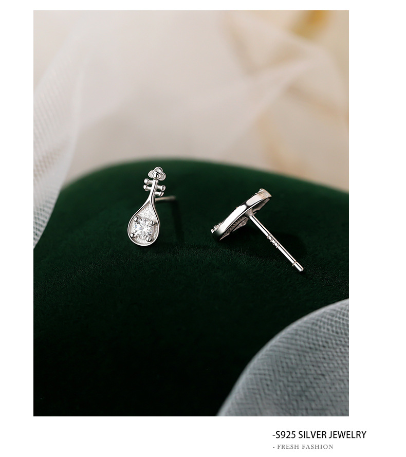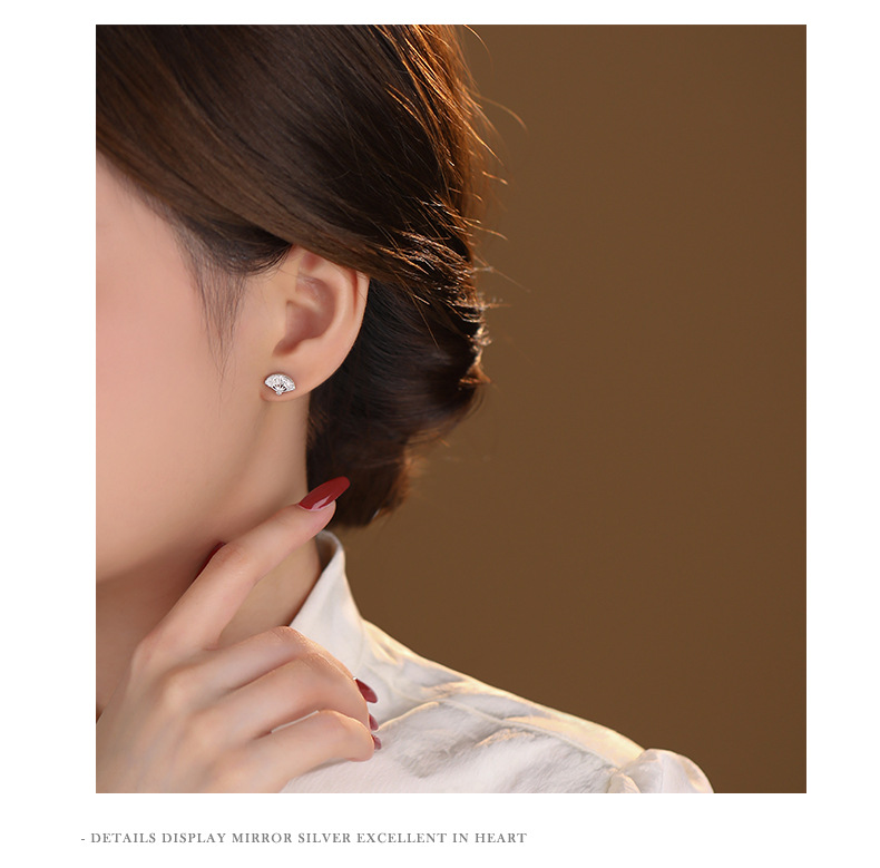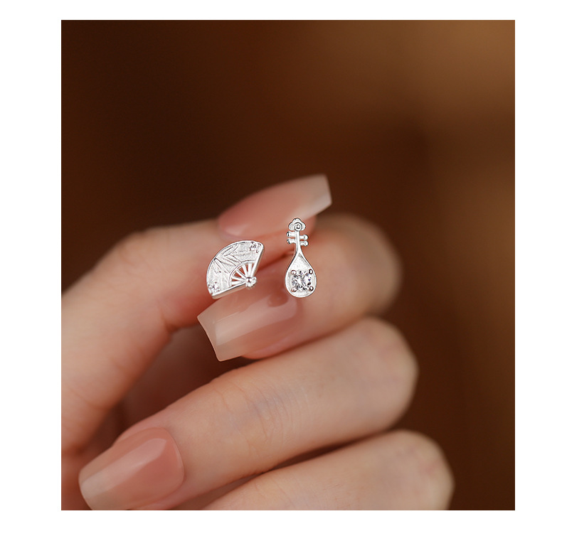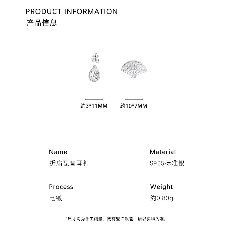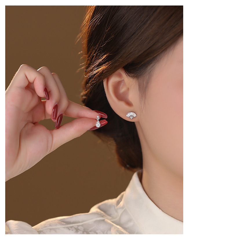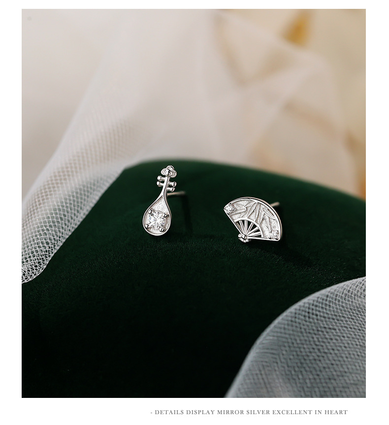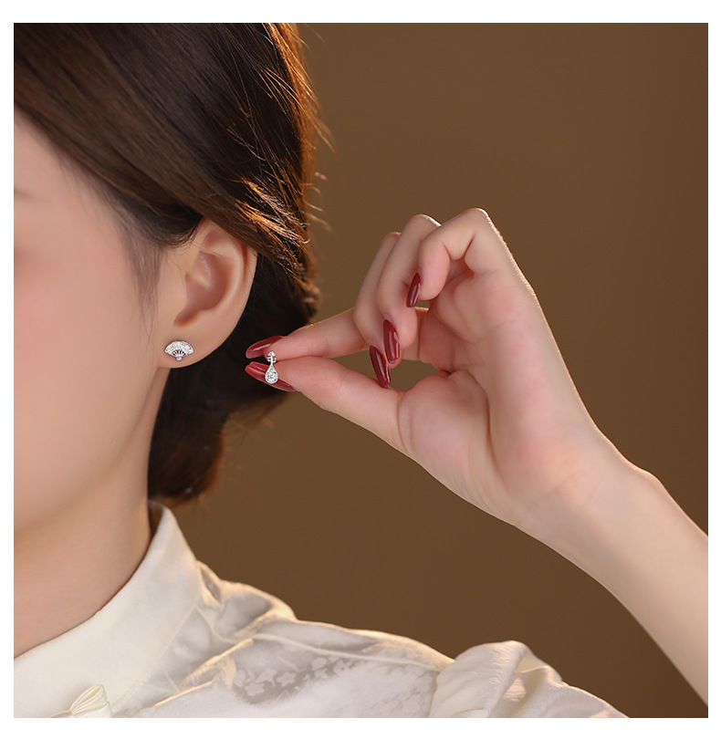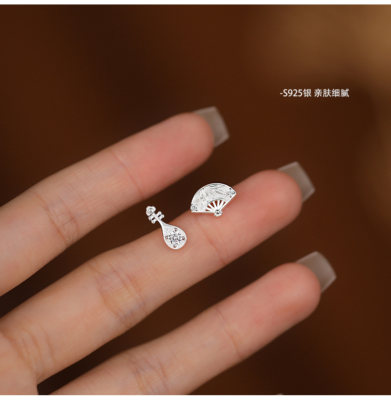 【琵琶扇子】S925银新中式锆石耳钉【YXS-E4449】