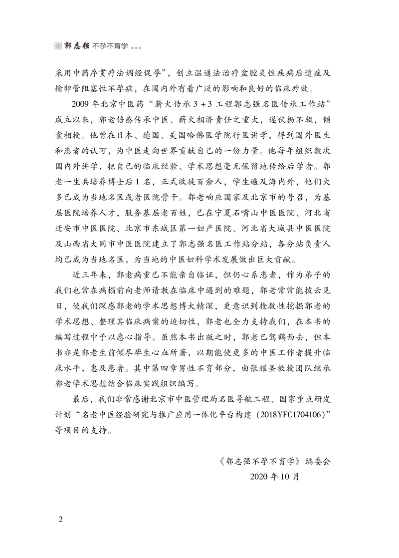 郭志强教授是全国著名的中医妇科专家、首都国医名师,临床经验丰富,擅长治疗不孕不育症、各种月经失调、盆腔炎性疾病、复发性流产、先兆流产等,疗效显著,被誉为“送子观音”。