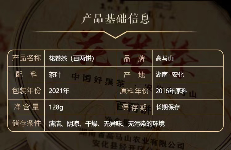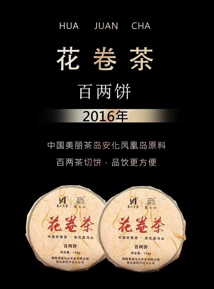 黑茶丨高马山 花卷茶(百两饼) 2016年 128g/饼