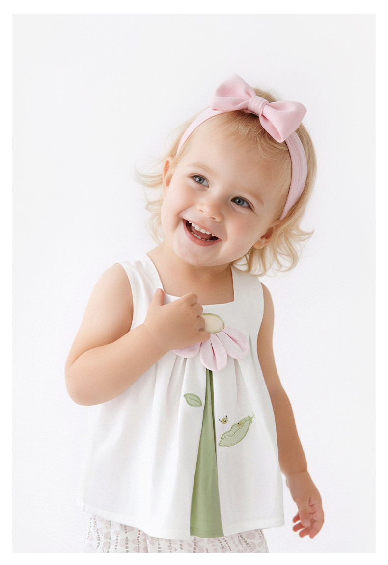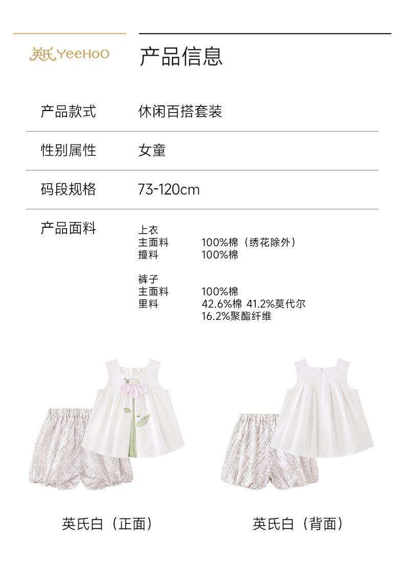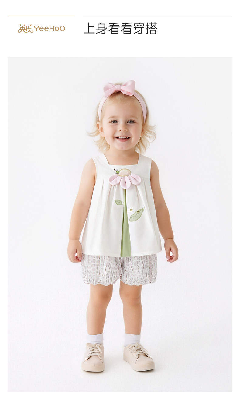 英氏女童套装夏季新款宝宝背心裤子透气碎花短裤衣服YRABJ2S024A