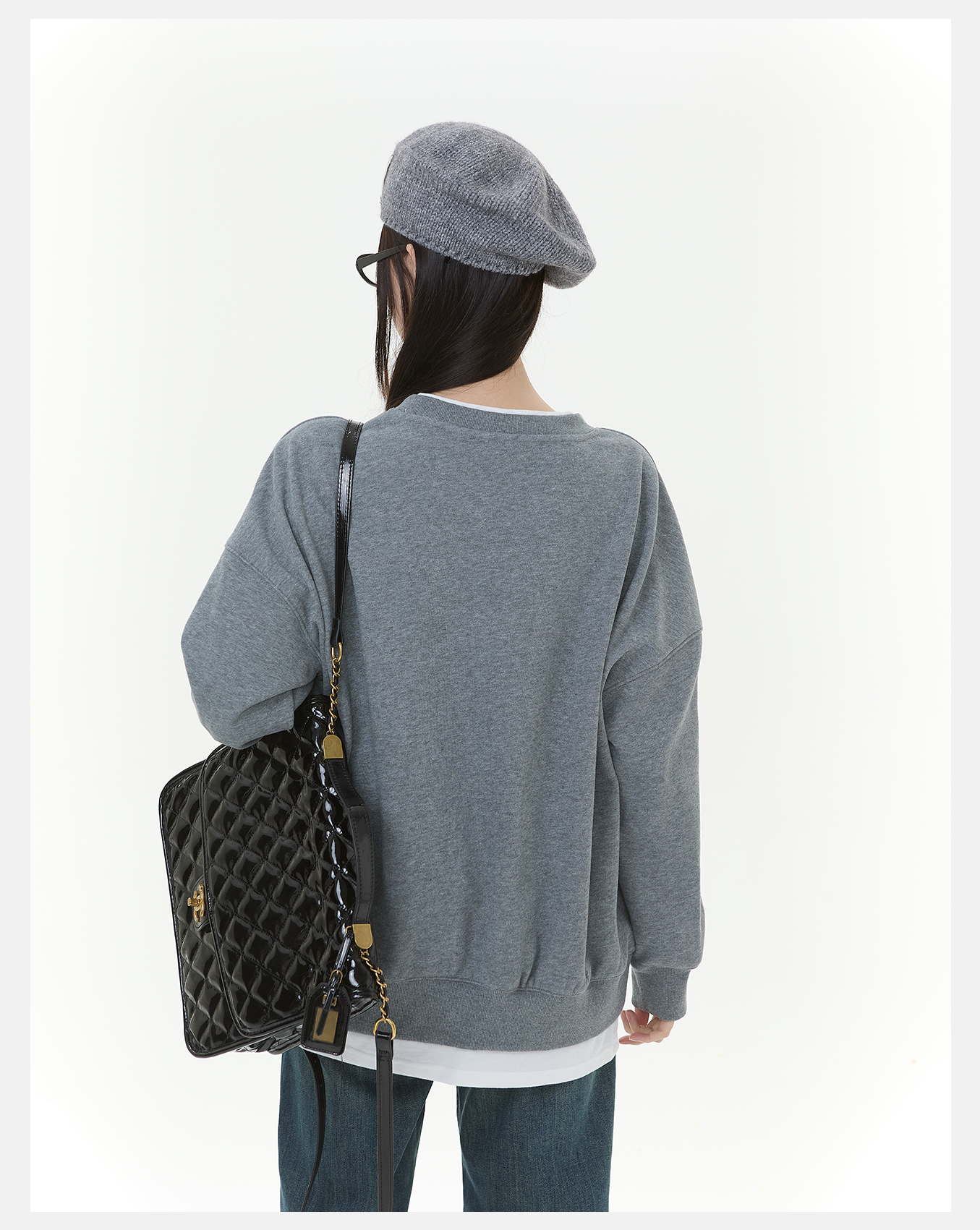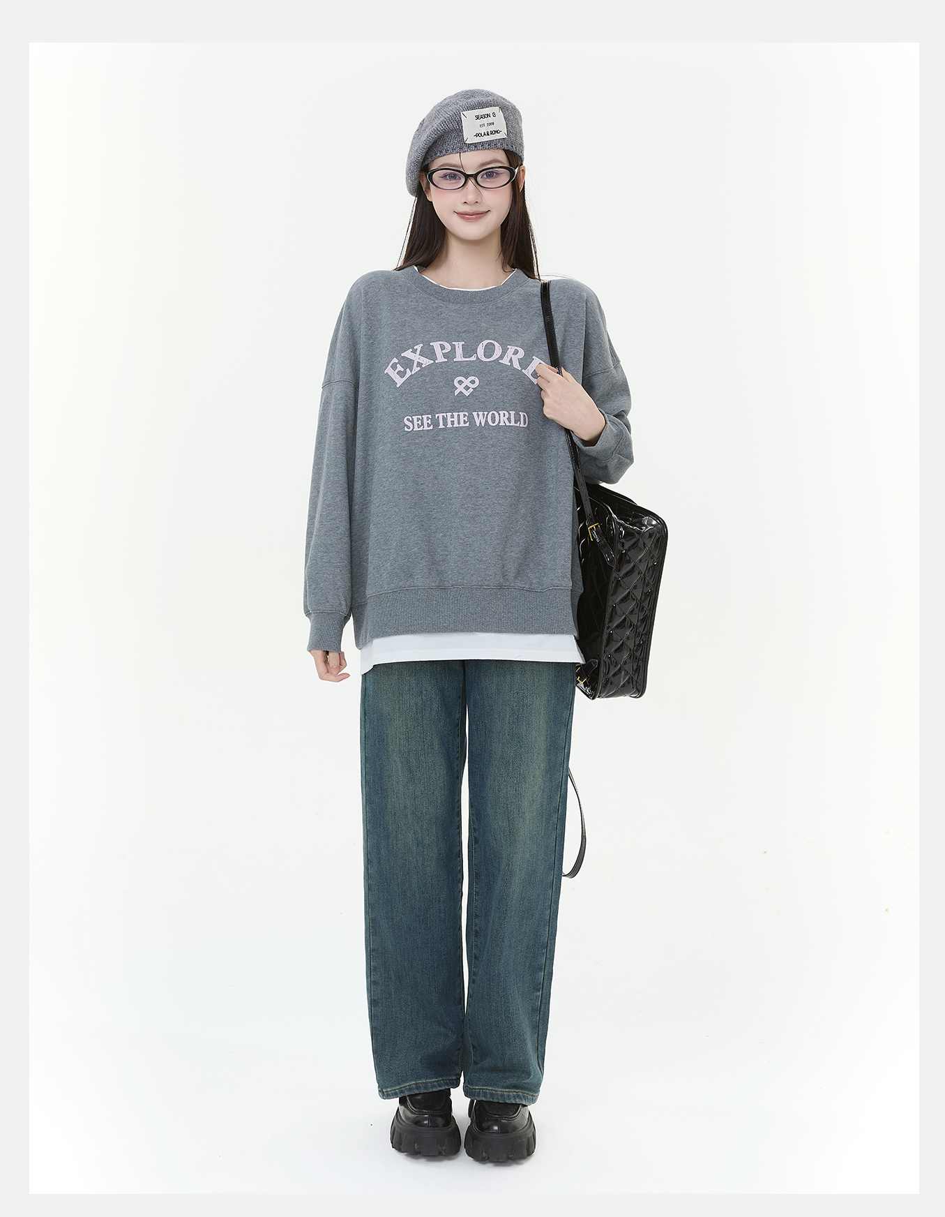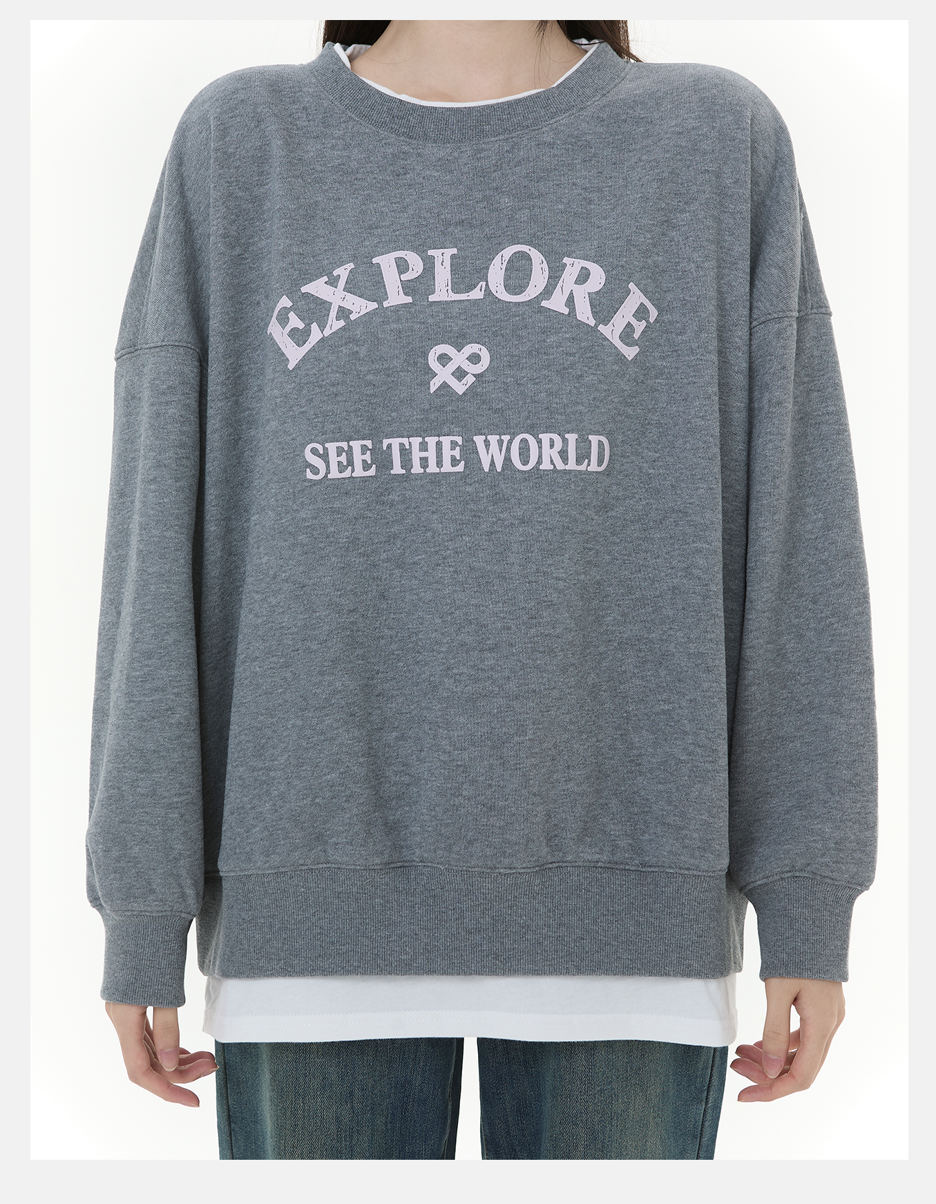 P&X设计师女装2025冬季拼接休闲风假两件短款卫衣825417152 灰色