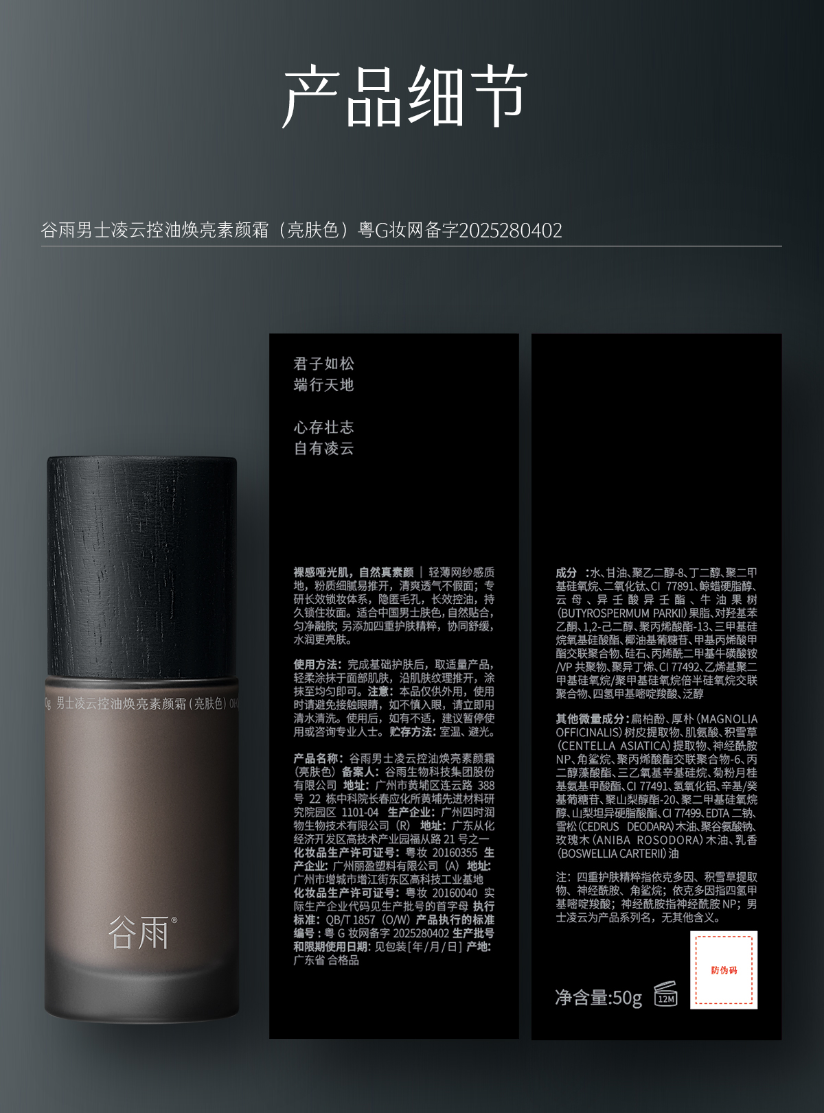 【双十二狂欢节】谷雨男士凌云控油焕亮素颜霜50g 防水防汗不假白