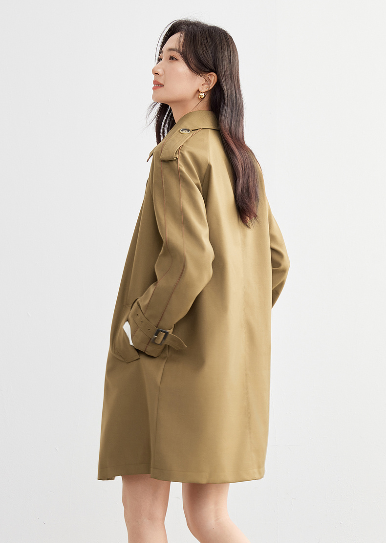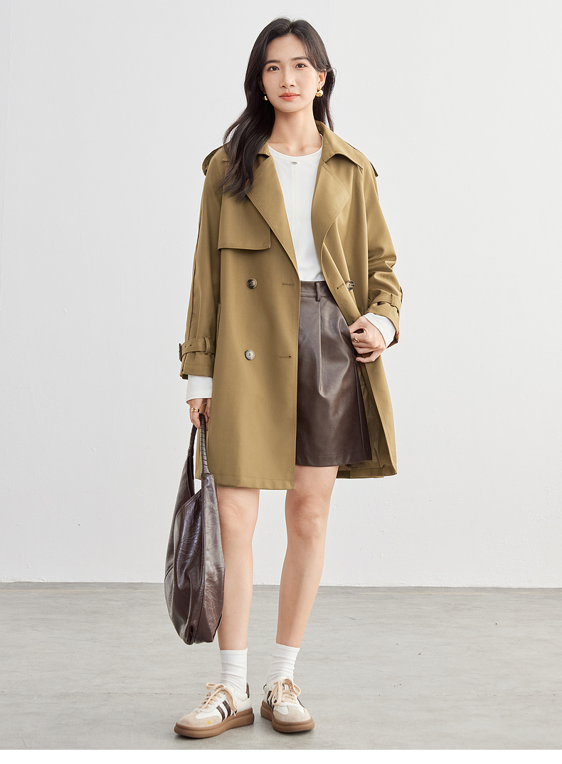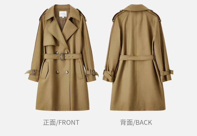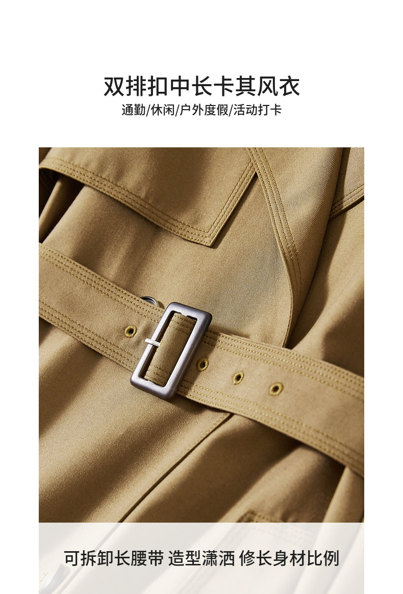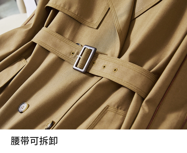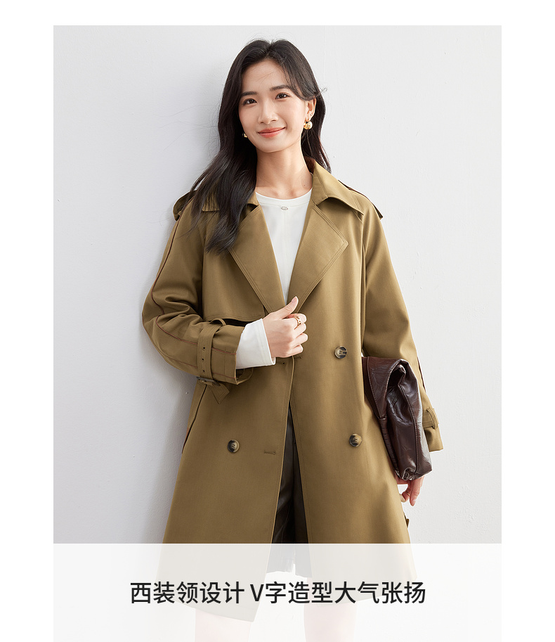 【内购】【经典卡其长风衣】气质通勤复古双排扣配腰带中长款宽松风衣-151F80080X
