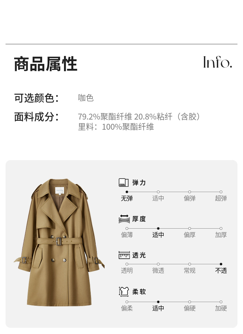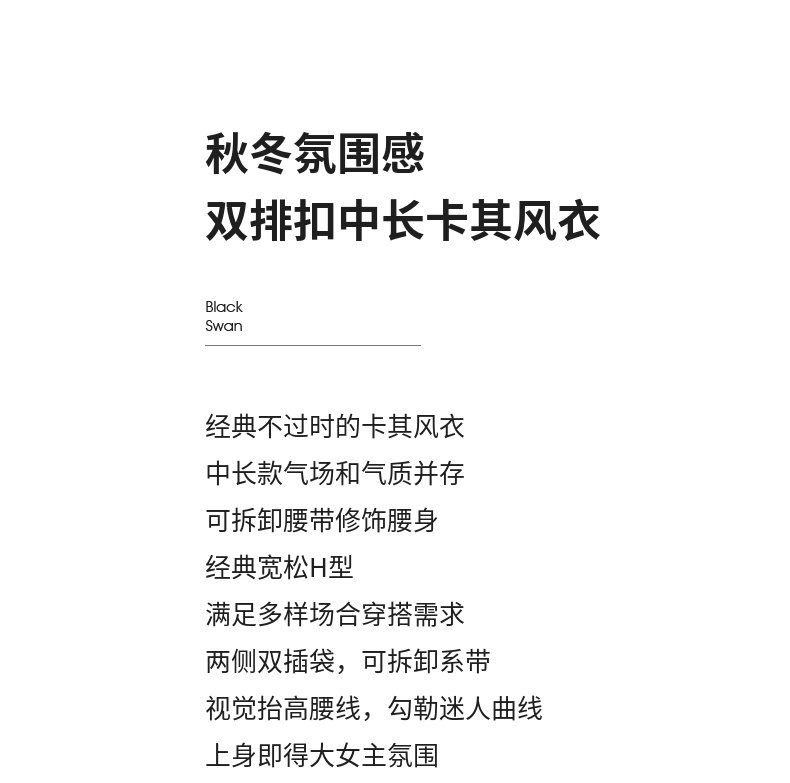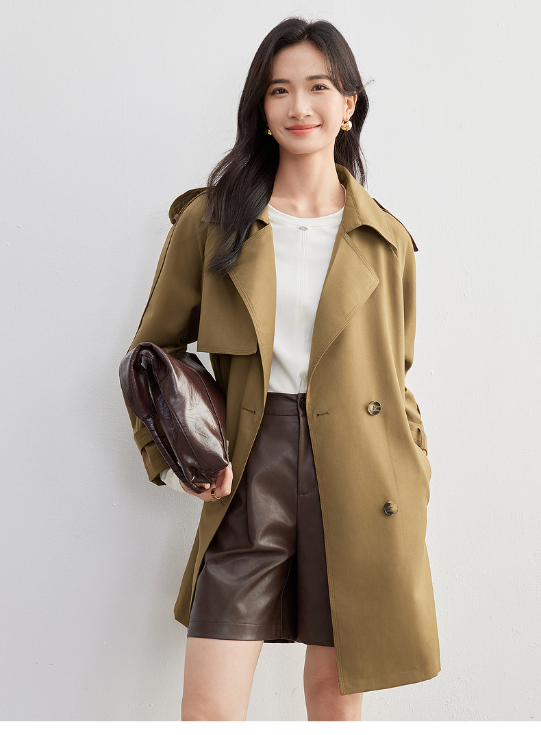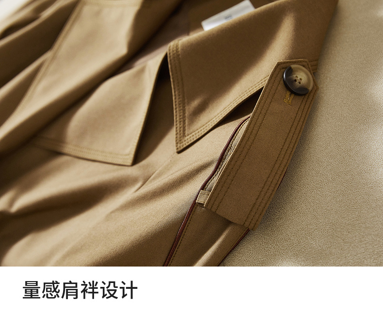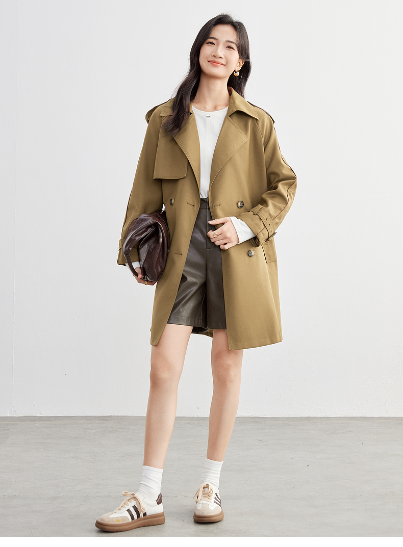 【内购】【经典卡其长风衣】气质通勤复古双排扣配腰带中长款宽松风衣-151F80080X
