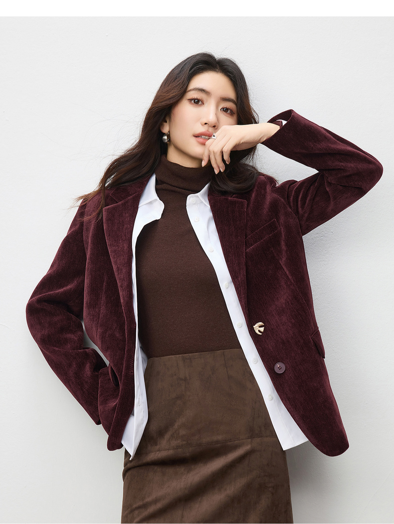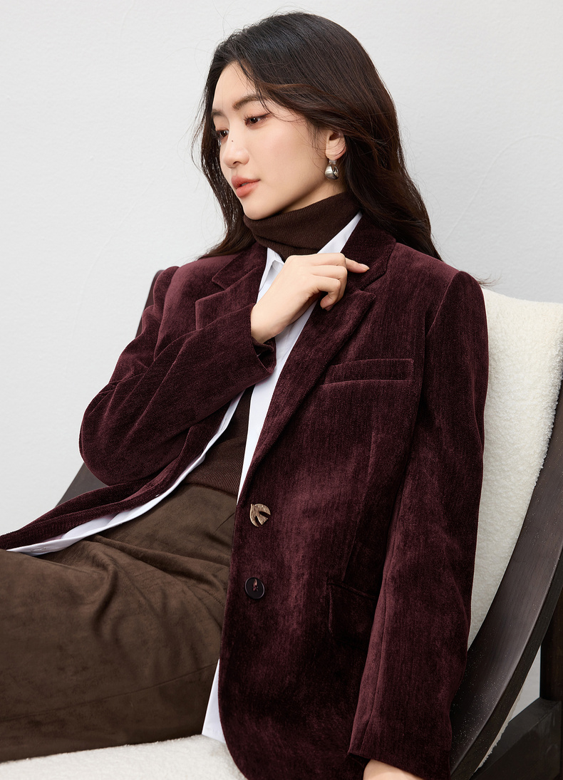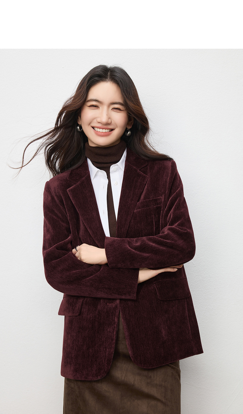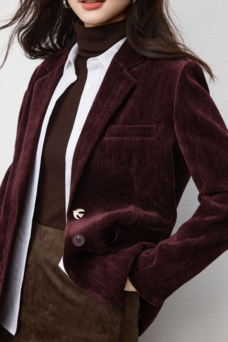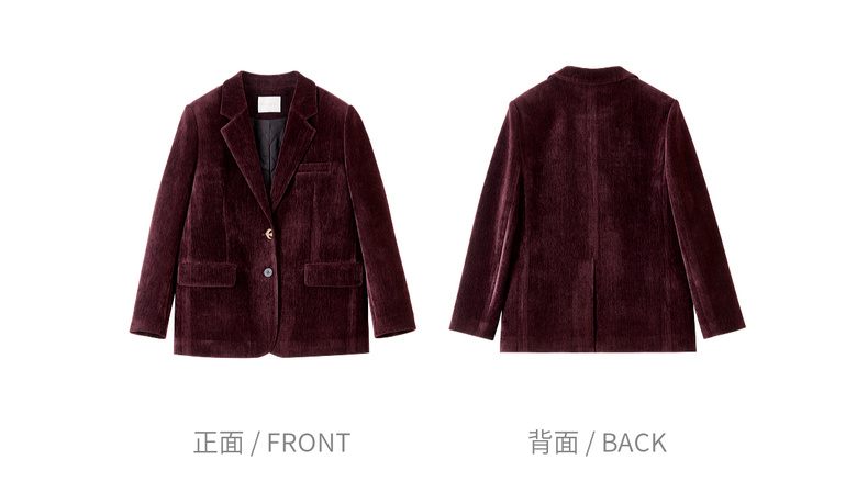 【内购】【雪尼尔外套】经典翻驳领双排扣小鸟金属扣双口袋雪尼尔外套-154XC2156
