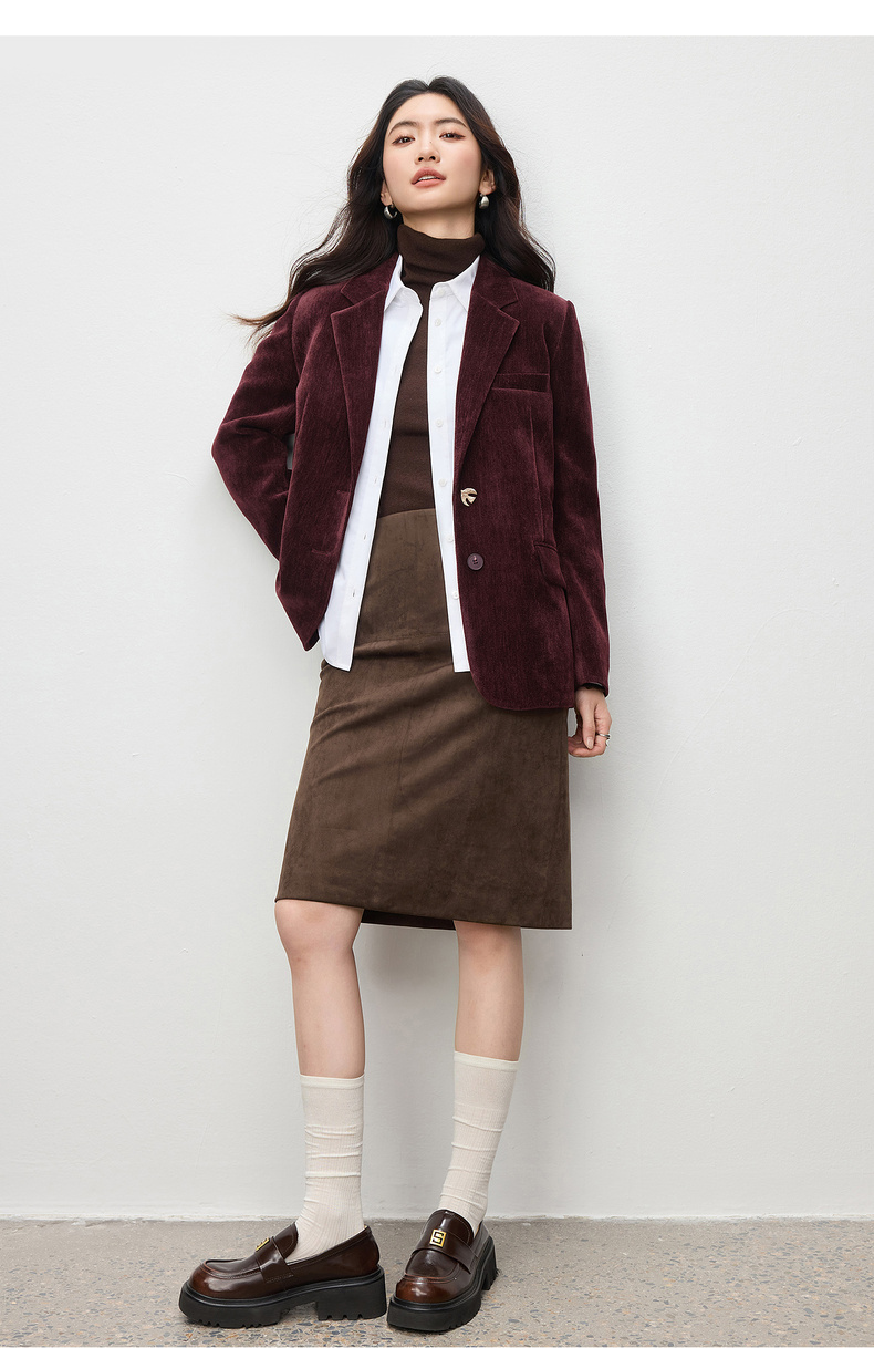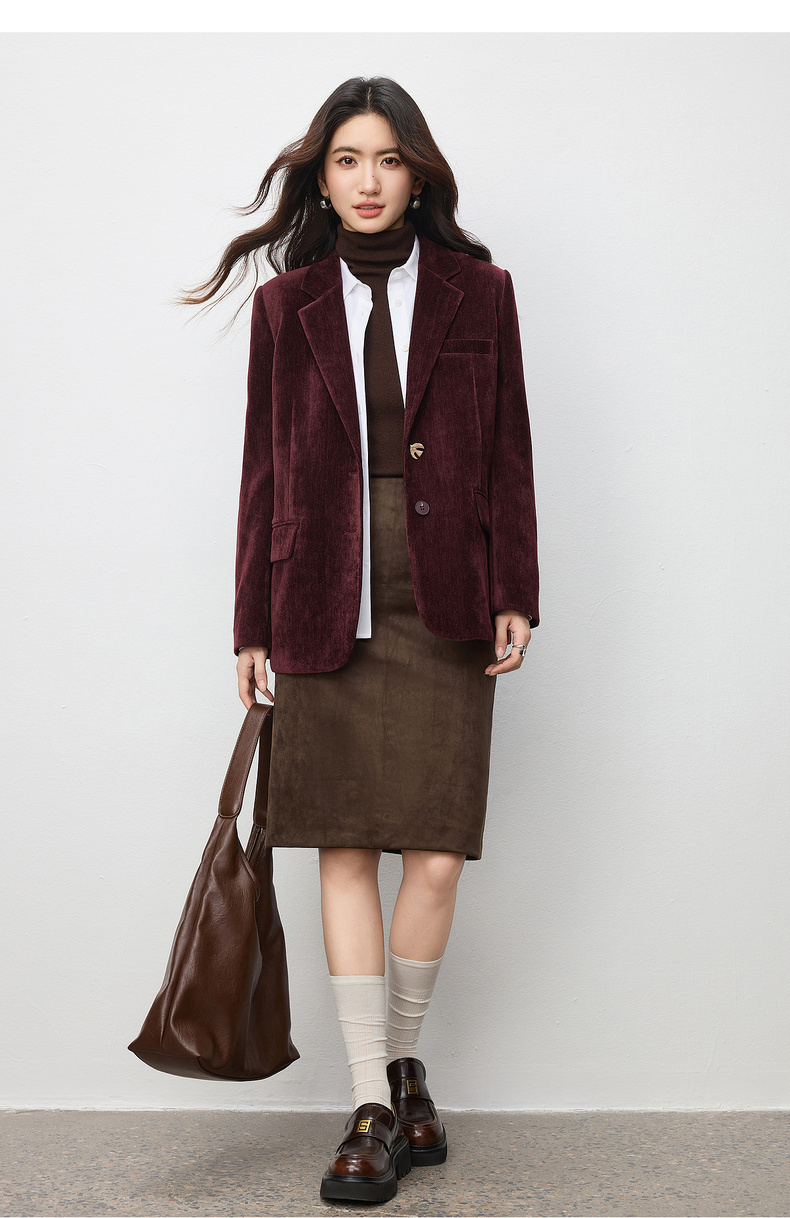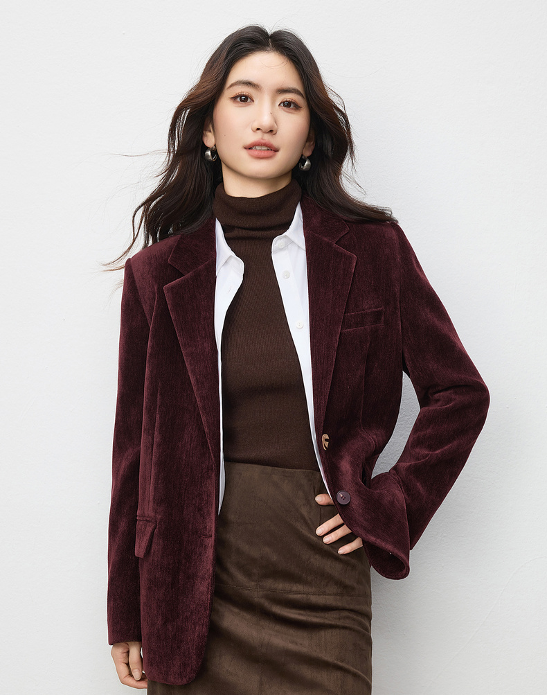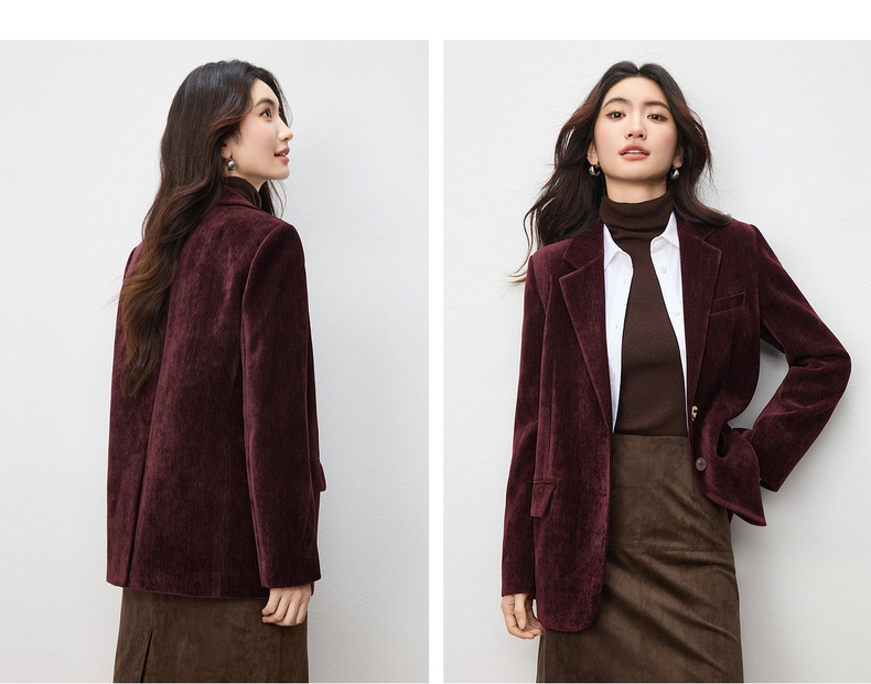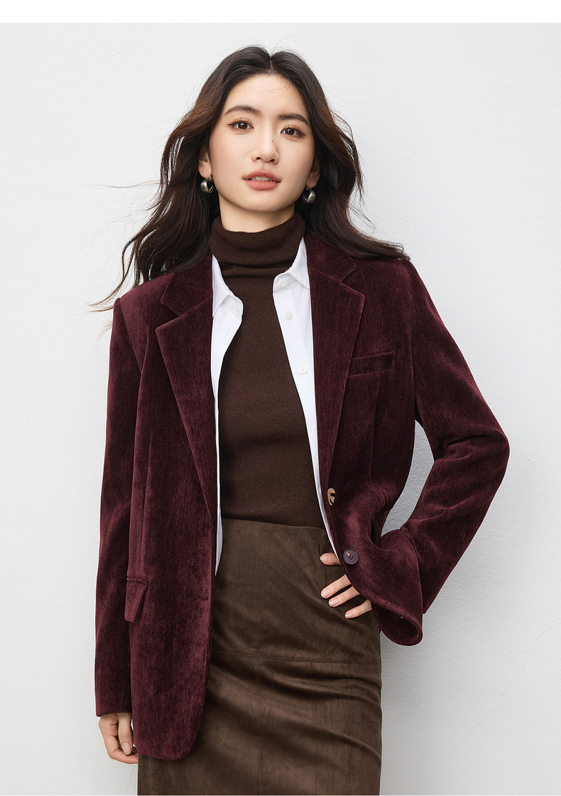【内购】【雪尼尔外套】经典翻驳领双排扣小鸟金属扣双口袋雪尼尔外套-154XC2156