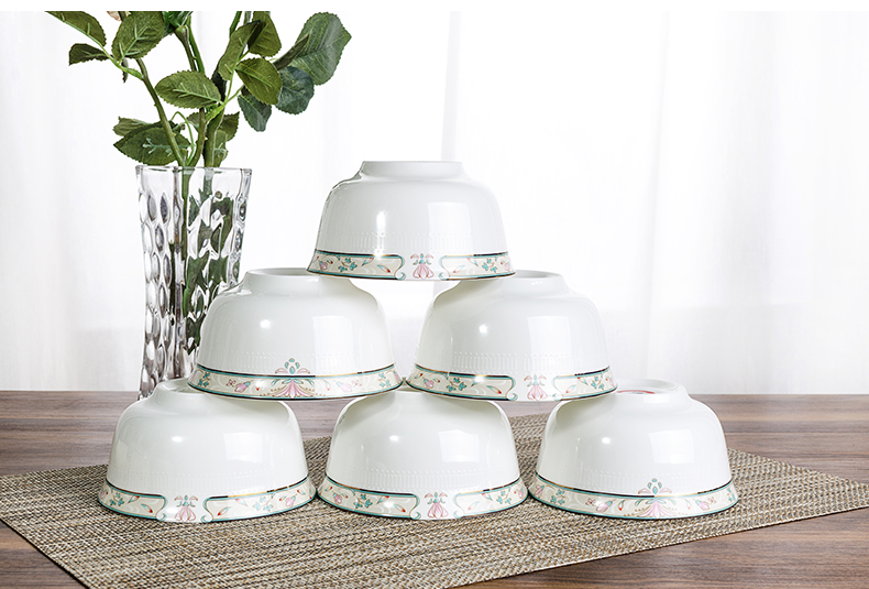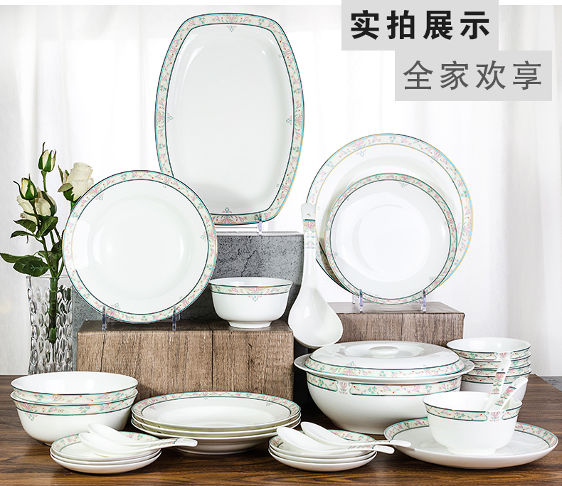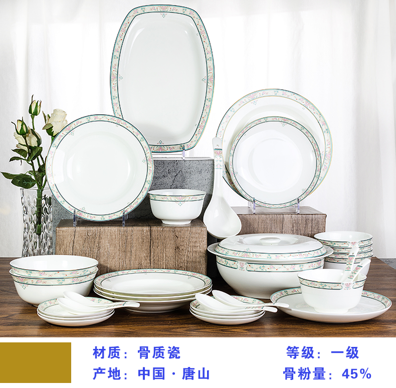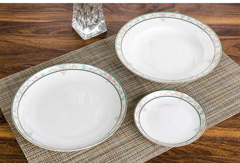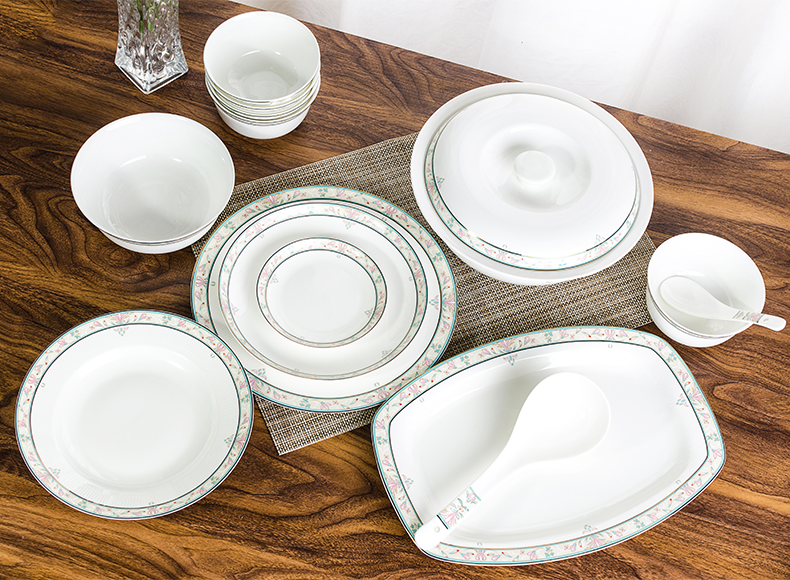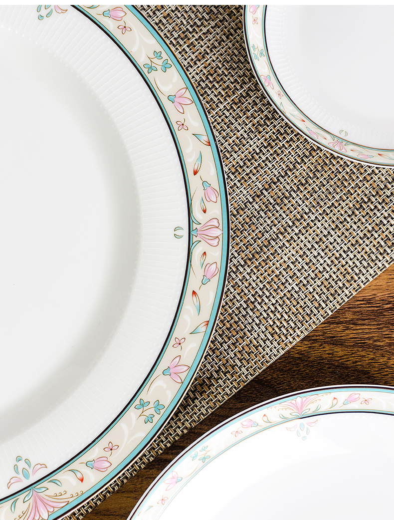 唐惠 碗 碗碟套装家用饭碗盘子勺子骨瓷餐具套装30头中式碗盘釉上彩浮雕工艺烟花三月家居实用礼品餐具 餐具