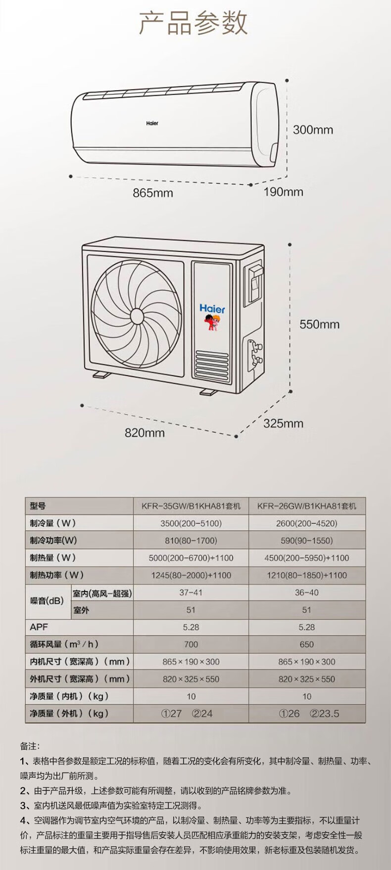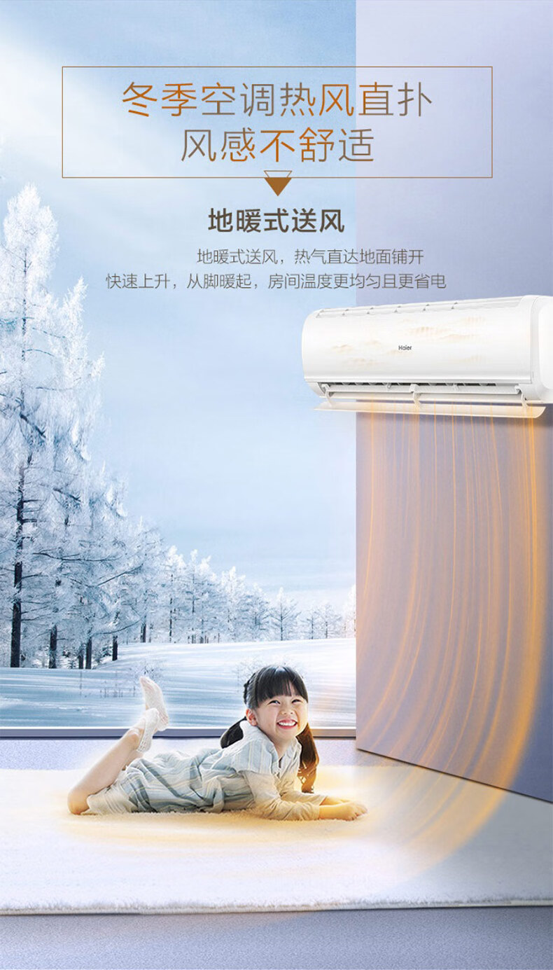海尔(Haier)空调1匹/1.5匹变频新一级壁挂式冷暖空调_瑞熙_家用客卧_自清洁_1.5匹_KFR-35GW/B1KHA81