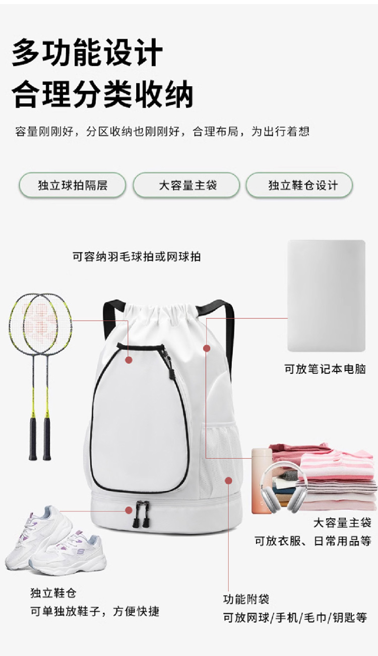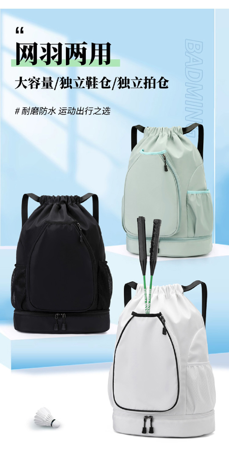 新款篮球包鞋位羽毛球包大容量运动抽绳包户外训练网球双肩包