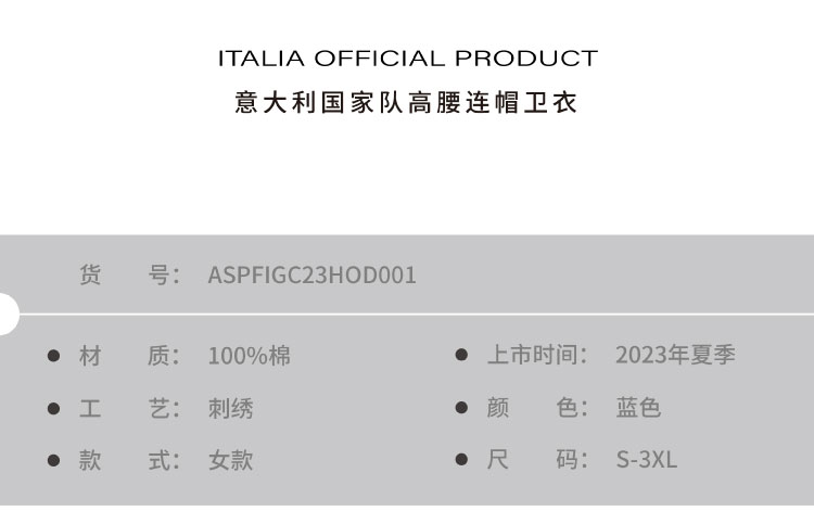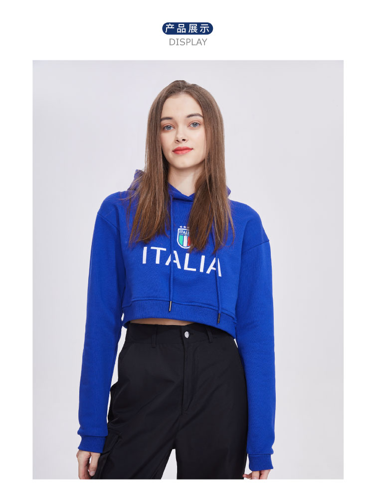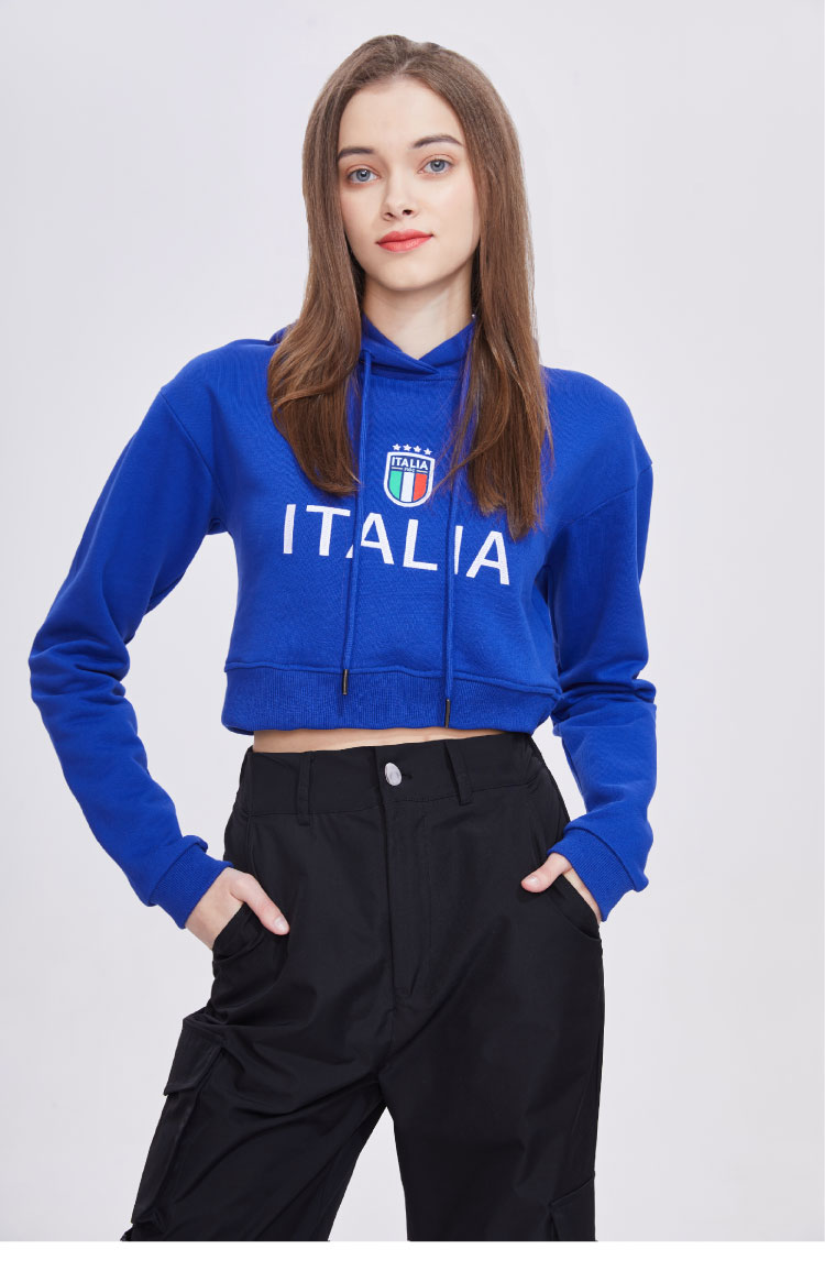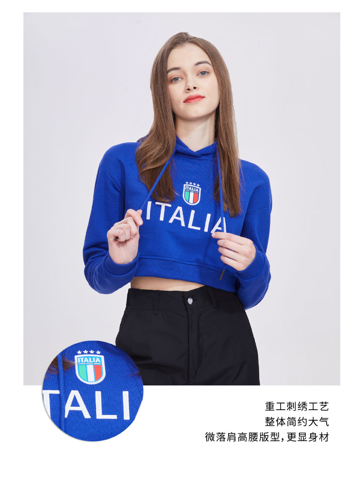 意大利国家队官方商品丨时尚高腰连帽卫衣刺绣女装足球迷用品夏季
